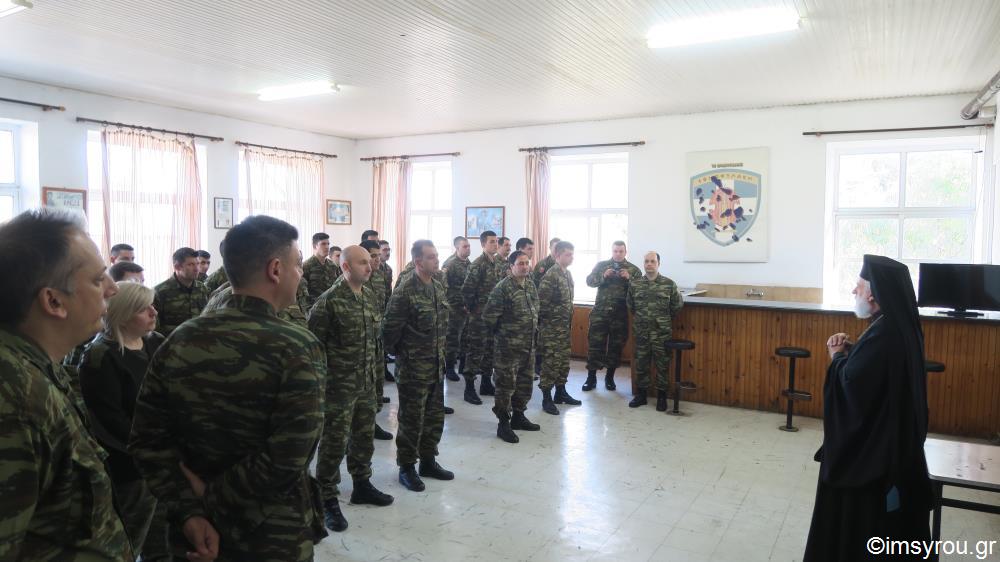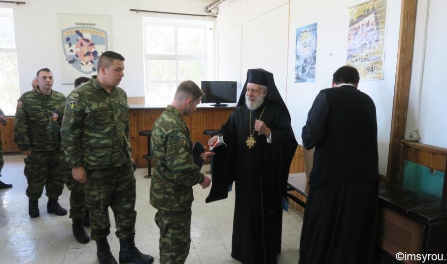 Επίσης, εξέφρασε για πολλοστή φορά στον Διοικητή του Τάγματος τη συμπαράσταση της τοπικής Εκκλησίας στους έχοντες ανάγκη στρατιώτες.