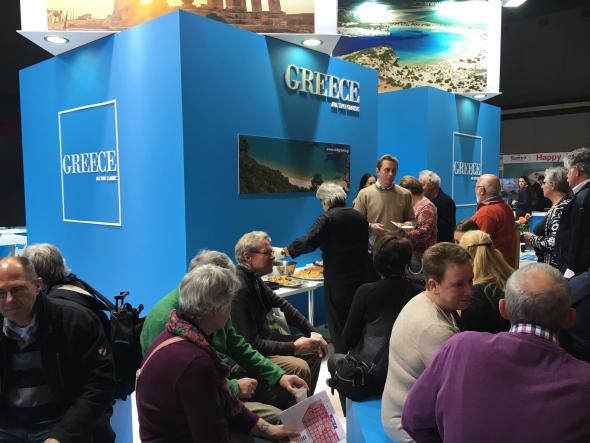 Στο περίπτερο του ΕΟΤ μετείχαν έντεκα συνεκθέτες, μεταξύ των οποίων οι Περιφέρειες Βορείου Αιγαίου, Κρήτης και Ιονίων Νήσων, οι Δήμοι Βόλου και Καβάλας, ο Οργανισμός Προβολής Χαλκιδικής κ.ά. Τιμώμενος προορισμός στο ελληνικό περίπτερο ήταν η Λέσβος, στο πλαίσιο ενίσχυσης των κρατήσεων στο νησί αυτό του Βορειοανατολικού Αιγαίου, που το τελευταίο διάστημα έχει δεχθεί υψηλές προσφυγικές ροές.