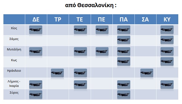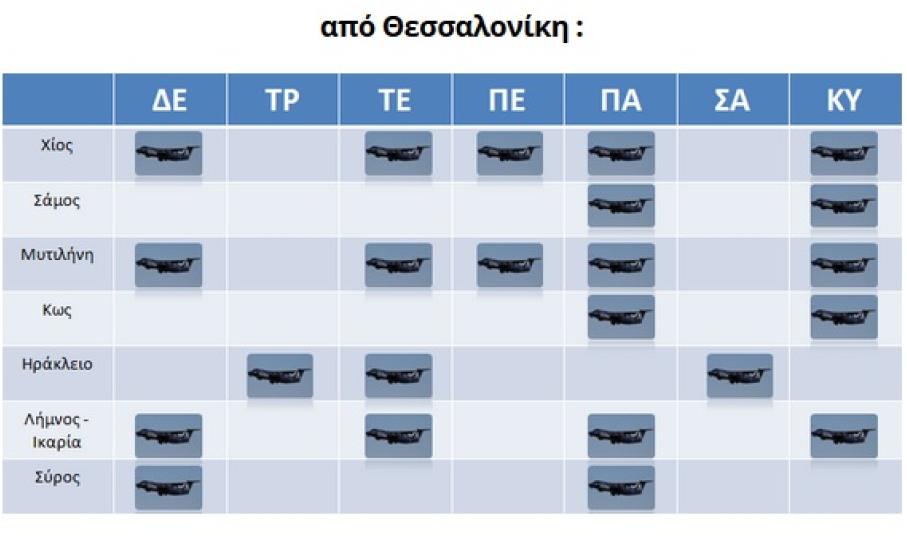 Ως φαίνεται από τους ενημερωτικούς πίνακες των αεροπορικών δρομολογίων της εταιρείας, η Σύρος συνεχίζει να διατηρεί τη σύνδεσή της με Θεσσαλονίκη έως το τέλος Μαΐου, δύο φορές την εβδομάδα και συγκεκριμένα κάθε Δευτέρα και Παρασκευή.