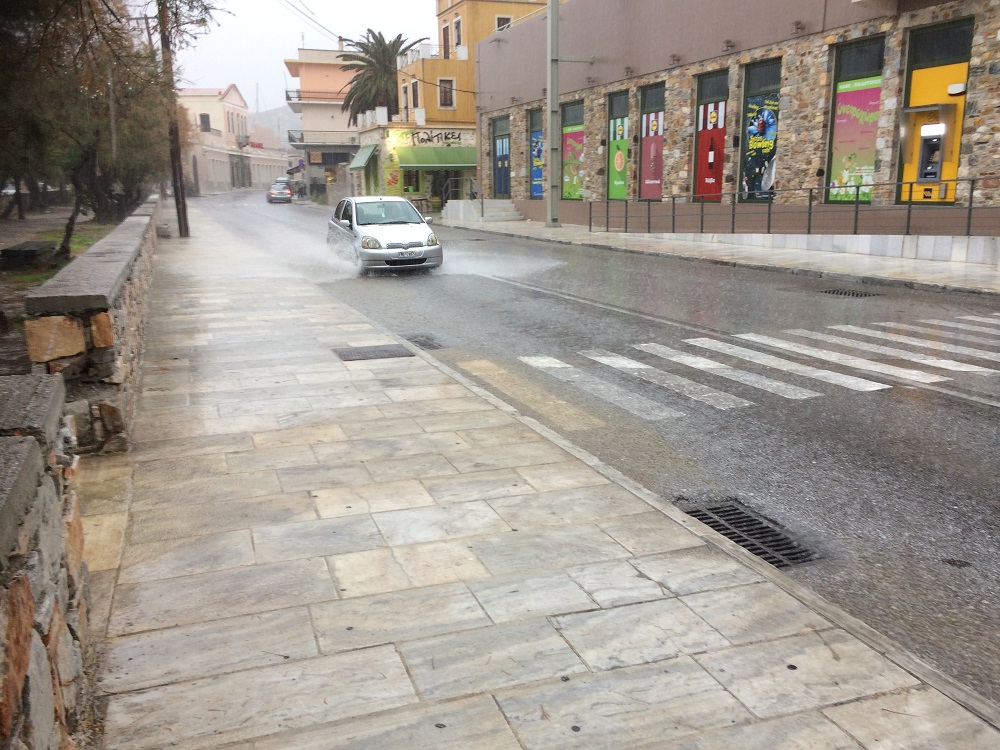 Σε χείμαρρο μετατράπηκε, σε όλο της το εύρος, η οδός Ηρώων Πολυτεχνείου, κατά τη διάρκεια των έντονων βροχοπτώσεων, που έπληξαν τη Σύρο, την Τρίτη, με αποτέλεσμα την πρόκληση τεράστιας ταλαιπωρίας σε οδηγούς, επιχειρήσεις, αλλά κυρίως σε πεζούς.