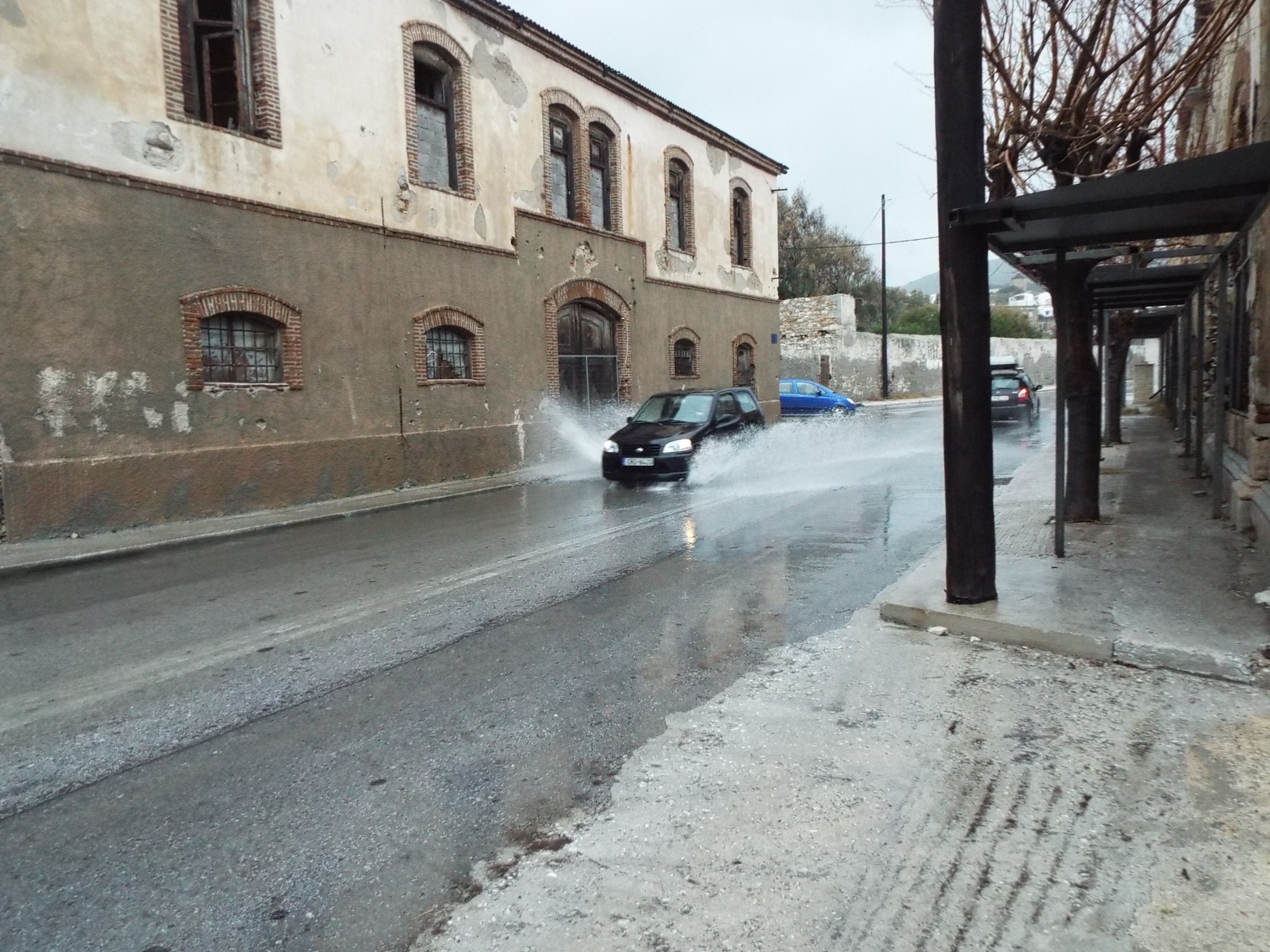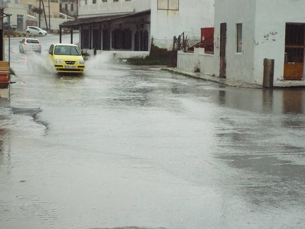 Στο ύψος της παλιάς αφαλάτωσης, το σκηνικό ήταν ακόμη χειρότερο, αφού από το απόγευμα, η στάθμη των υδάτων ανέβηκε, με κίνδυνο να προκαλέσει ζημιές στις επιχειρήσεις, ενώ στο ύψος του εργοστασίου του Λαδόπουλου, υπήρχαν επίσης σημεία με λιμνάζοντα νερά, ειδικότερα στο σημείο της διασταύρωσης με Άνω Μάννα και στην πύλη του εργοστασίου της ΔΕΗ.
