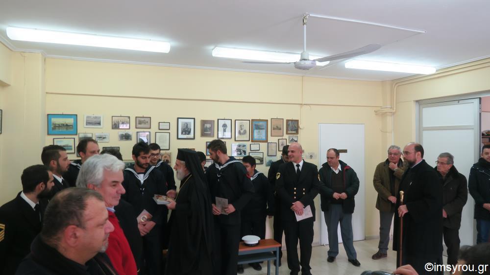 Ο Σεβασμιώτατος κ. Δωρόθεος Β΄ απηύθυνε ευχές προς όλα τα στελέχη της Βάσεως, ευχαρίστησε για το εθνικό και κοινωνικό έργο που επιτελούν και διένειμε σε όλους αντίγραφο της εφεστίου εικόνος του Καθεδρικού Ιερού Ναού του Αγίου Νικολάου Ερμουπόλεως.