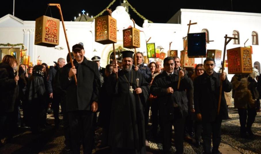 Χιλιάδες φανάρια κράτησαν στα χέρια τους οι μαθητές όλων των σχολείων της Τήνου, και μαζί τους ο Αρχιερατικός Επίτροπος της ιεράς νήσου Πρωτοπρ. Γεώργιος Φανερός, ο εκπρόσωπος του Επισκόπου των Ρ/Καθολικών Τήνου, οι Δήμαρχοι Τήνου και Μυκόνου, ο Έπαρχος Τήνου, Περιφερειακοί και Δημοτικοί Σύμβουλοι, τα μέλη της Διοικούσης Επιτροπής του Ιερού Ιδρύματος, οι Διοικητές των Υπηρεσιών των Σωμάτων Ασφαλείας στην Τήνο, Πολιτευτές των Κυκλαδων, οι εκπαιδευτικοί και πλήθος κόσμου.
