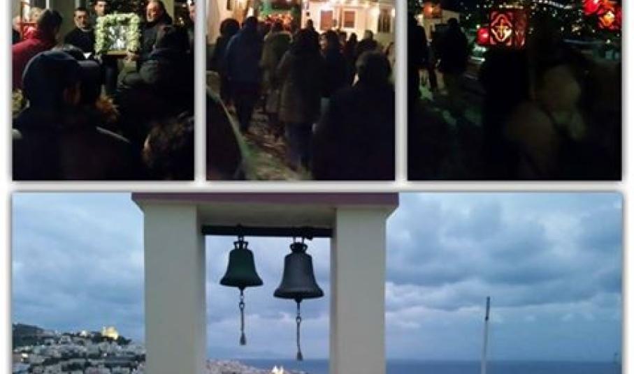 Μετά την ομιλία του κ. Δημάρχου και την καύση πυροτεχνημάτων η πομπή κατέληξε στον Ναό των Τριών Ιεραρχών.