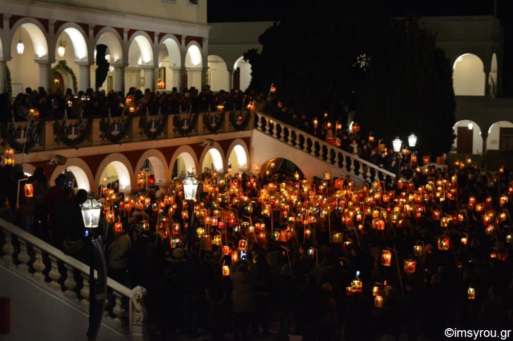 Ένα πολύχρωμο ποτάμι σε Τήνο και Σύρο σχημάτισαν και φέτος τα καθιερωμένα «Φαναράκια», στο πλαίσιο της επετείου της Ευρέως της Αγίας και Θαυματουργής Εικόνας της Ευαγγελιστρίας.