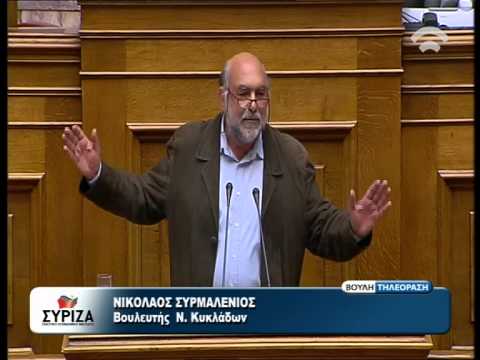 Κατάκτηση για τη δημοκρατία, το κοινοβουλευτικό σύστημα, αλλά και το πολιτικό σύστημα χαρακτήρισε ο βουλευτής Κυκλάδων του ΣΥΡΙΖΑ Νίκος Συρμαλένιος το πόρισμα της Εξεταστικής Επιτροπής της Βουλής για τα δάνεια των τραπεζών σε κόμματα και ΜΜΕ, διότι το πόρισμα αυτό ξεσκεπάζει όλη τη διαπλοκή του πολιτικού συστήματος, που επί πολλά χρόνια, σε απόλυτη διαπλοκή με τις τράπεζες και τα ΜΜΕ, επεδίωκε με κάθε τρόπο την αναπαραγωγή του, αδιαφορώντας για τη ζημιά που προκαλούσε στη χώρα και στον ελληνικό λαό.
