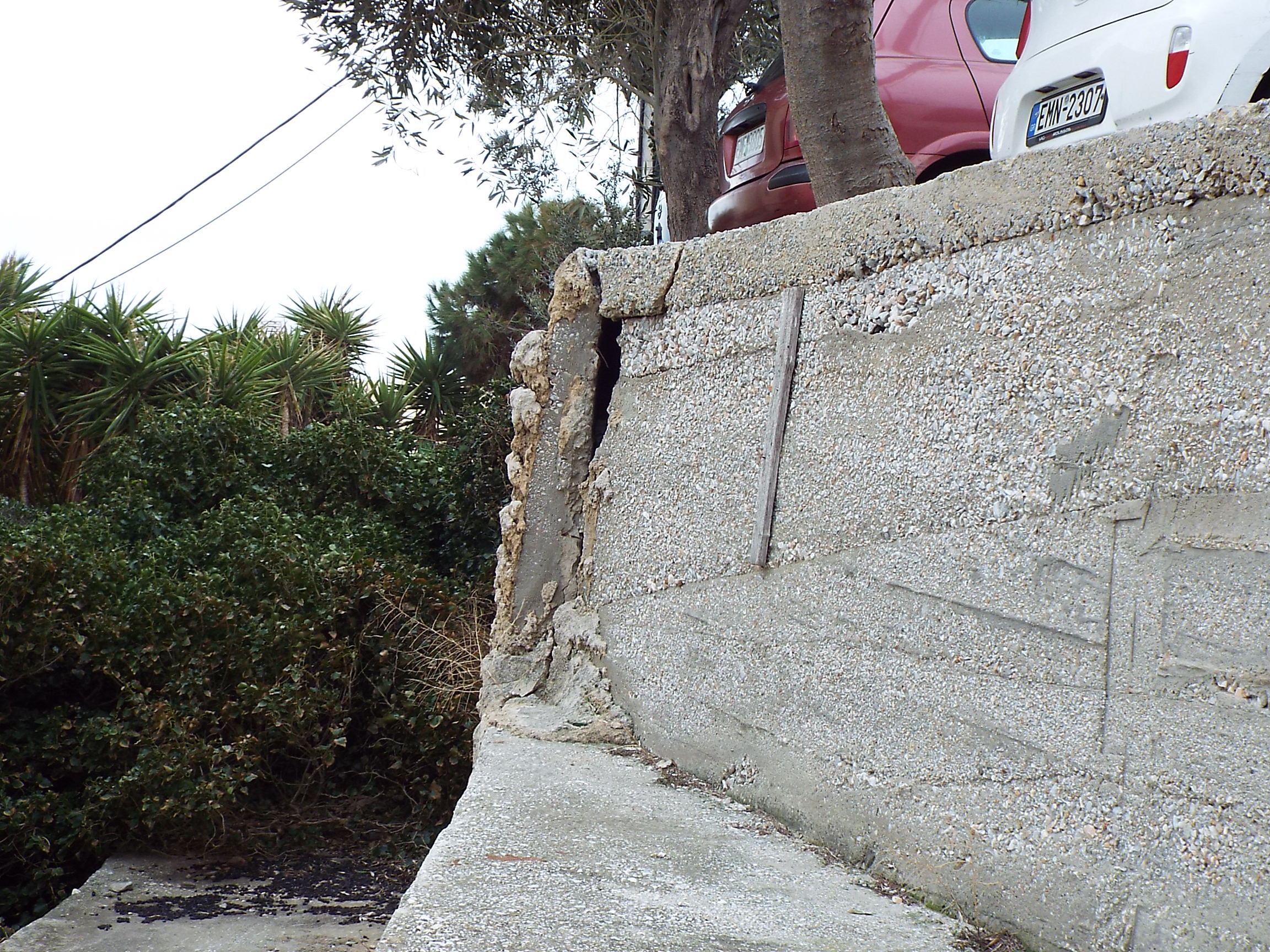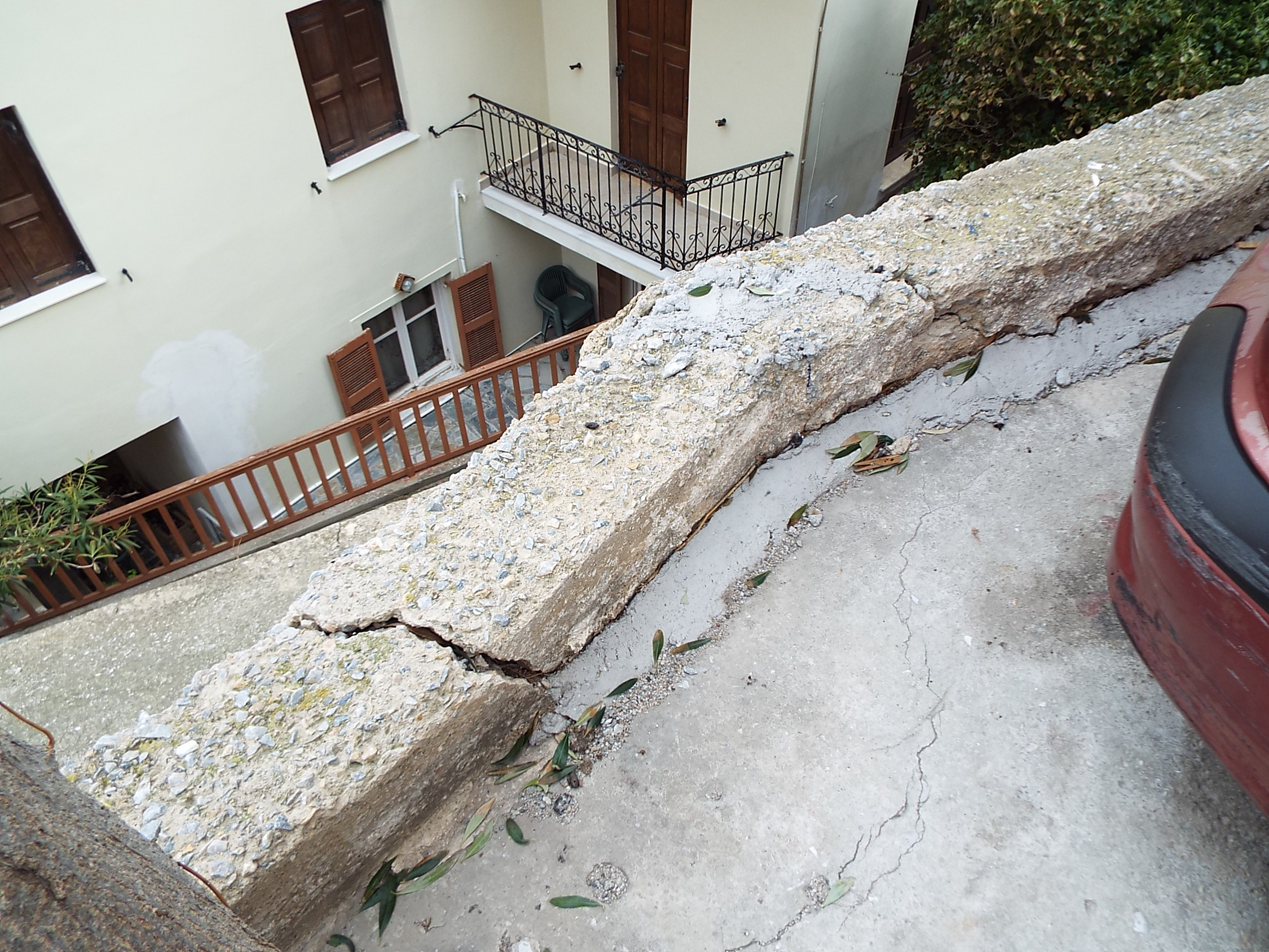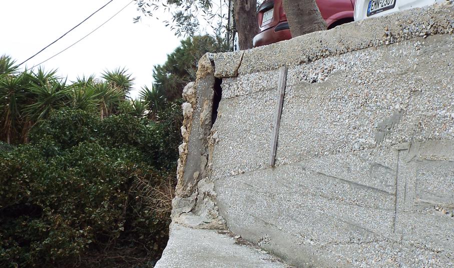 Σοβαρός τραυματισμός είχε σημειωθεί, πριν από αρκετό διάστημα, στο συγκεκριμένο σημείο, όταν ένας οδηγός, προσπαθώντας να φτάσει στο πορτ-μπαγκάζ του αυτοκινήτου του, πάτησε πάνω στο αποκολλημένο τοιχίο, το οποίο κατακρημνίστηκε, με αποτέλεσμα ο άτυχος άνδρας να πέσει από ύψος περίπου 2,5 μέτρων. Το γεγονός, αυτό είχε φέρει στην επιφάνεια το πρόβλημα που αντιμετωπίζει το συγκεκριμένο τοιχίο, το οποίο λόγω της συνεχούς ώθησής του προς τα έξω, από τις ρόδες των οχημάτων που σταθμεύουν, έχει ουσιαστικά αποκολληθεί από το δρόμο και στηρίζεται μετά βίας.