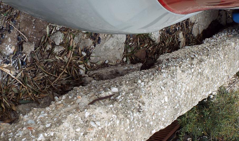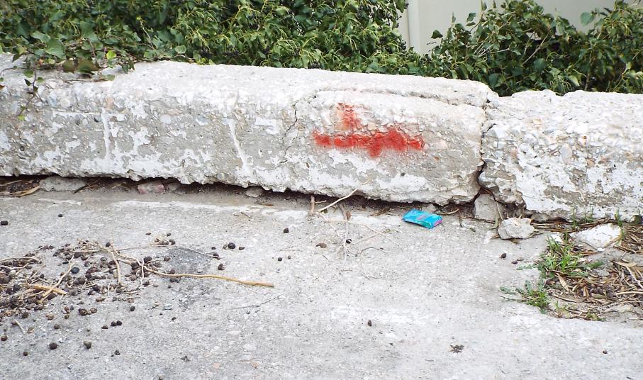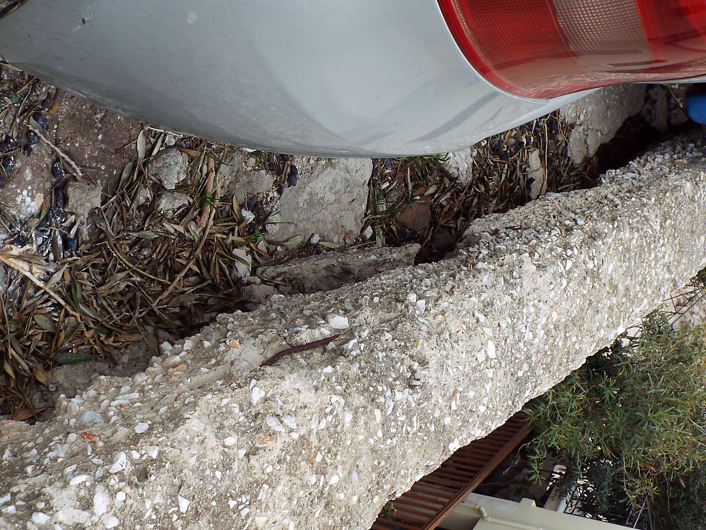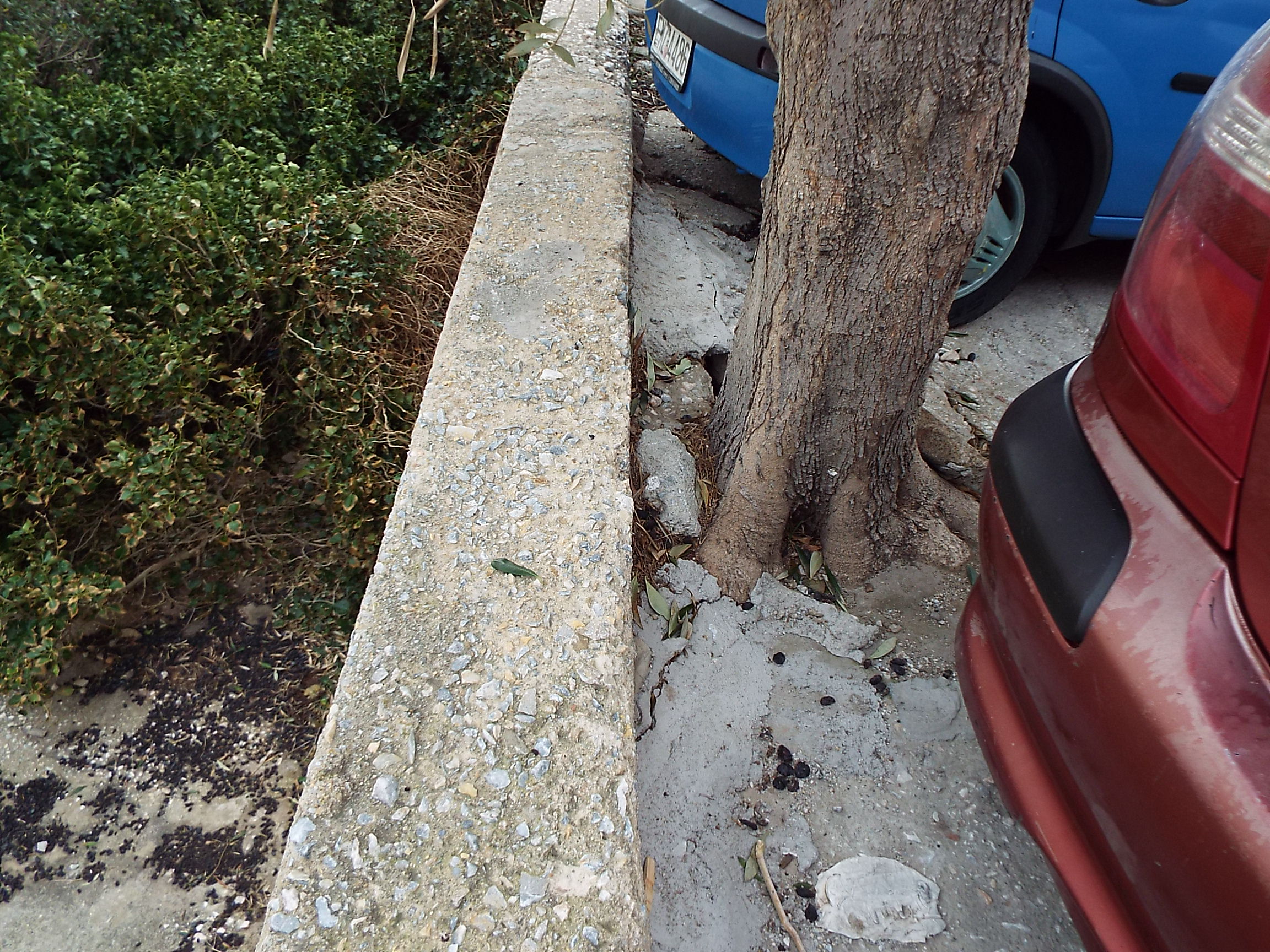 Σοβαρός τραυματισμός είχε σημειωθεί, πριν από αρκετό διάστημα, στο συγκεκριμένο σημείο, όταν ένας οδηγός, προσπαθώντας να φτάσει στο πορτ-μπαγκάζ του αυτοκινήτου του, πάτησε πάνω στο αποκολλημένο τοιχίο, το οποίο κατακρημνίστηκε, με αποτέλεσμα ο άτυχος άνδρας να πέσει από ύψος περίπου 2,5 μέτρων. Το γεγονός, αυτό είχε φέρει στην επιφάνεια το πρόβλημα που αντιμετωπίζει το συγκεκριμένο τοιχίο, το οποίο λόγω της συνεχούς ώθησής του προς τα έξω, από τις ρόδες των οχημάτων που σταθμεύουν, έχει ουσιαστικά αποκολληθεί από το δρόμο και στηρίζεται μετά βίας.