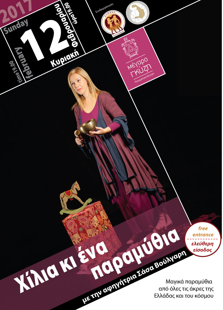 «Χίλια κι ένα παραμύθια» από όλες τις άκρες της Ελλάδας και του κόσμου θα αφηγηθεί την Κυριακή 12 Φεβρουαρίου 2017 στις 18:00 η Σάσα Βούλγαρη.