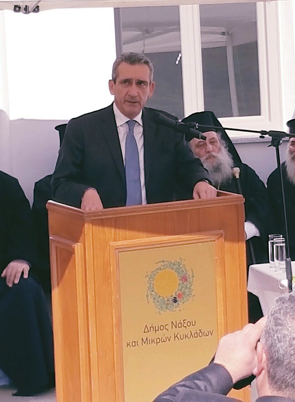 “Είναι μεγάλη η χαρά μου που βρισκόμαστε σήμερα στη Νάξο, για να παραδώσουμε στην κοινωνία -τόσο της μεγαλονήσου των Κυκλάδων, όσο και των μικρότερων νησιών, της Ηρακλειάς, της Δονούσας, της Σχοινούσας και του Κουφονησίου- ένα έργο τεράστιας σημασίας.