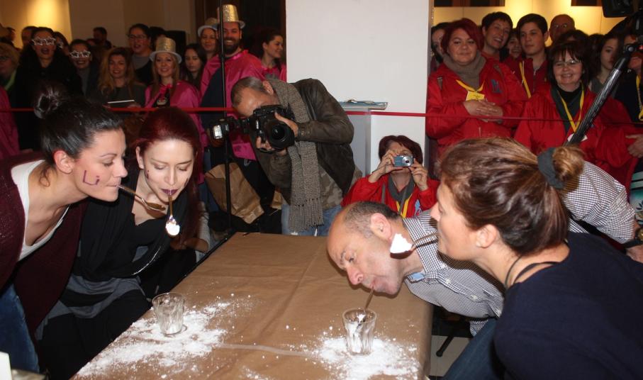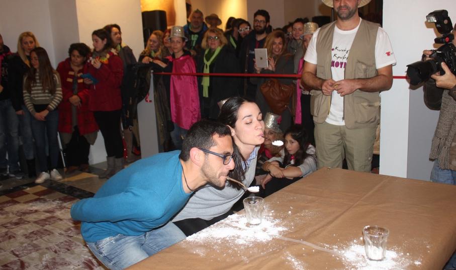 Άφθονη λουκουμόσκονη, συνοδευόμενη από γέλια, χειροκροτήματα και επευφημίες σκορπίστηκε στην χθεσινή τελετή έναρξης του 3ου Κυνηγιού Κρυμμένου Λουκουμιού στη Σύρο.