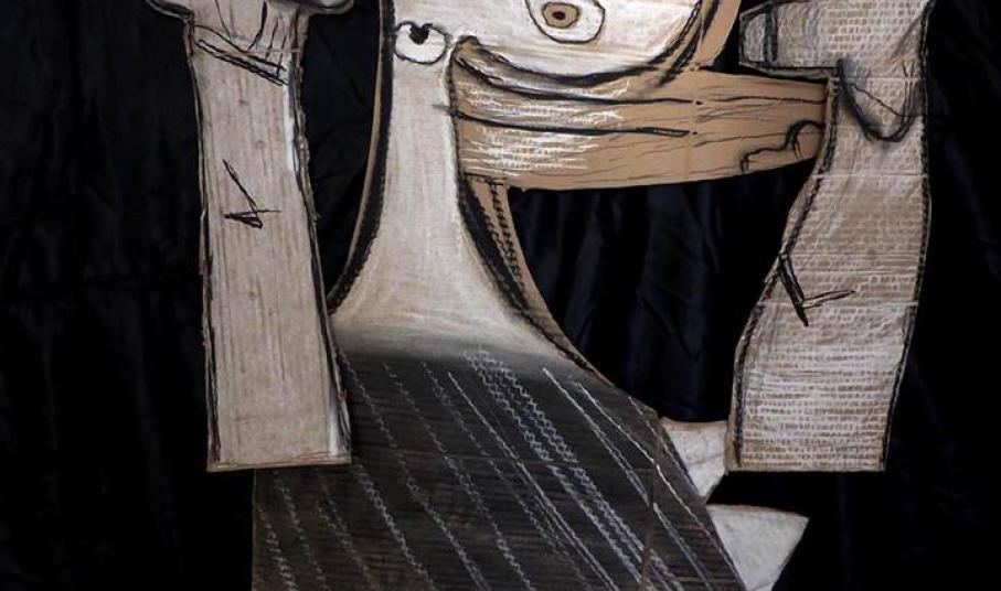 Χρησιμοποιώντας χαρτόκουτα, κιμωλίες και κάρβουνα και εμπνεόμενοι από το πνεύμα του θεάτρου μαριονέτας και σκιών, τα παιδιά υπό την καθοδήγηση της καθηγήτριας Εικαστικών, Ολυμπιάδας Κελαϊδή αναπαράστησαν τα διαχρονικά μηνύματα της απανθρωπιάς, της βιαιότητας και της απόγνωσης του πολέμου.