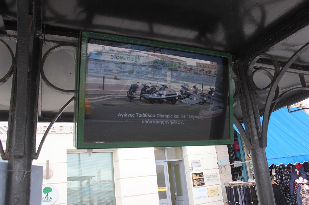 Πρέπει να τονισθεί πως, προς το παρόν, οι ηλεκτρονικοί πίνακες που έχουν τοποθετηθεί και λειτουργούν βρίσκονται στις στάσεις στο ύψος της Αποκεντρωμένης Διοίκησης Αιγαίου και στο ύψος της Τράπεζας Πειραιώς.