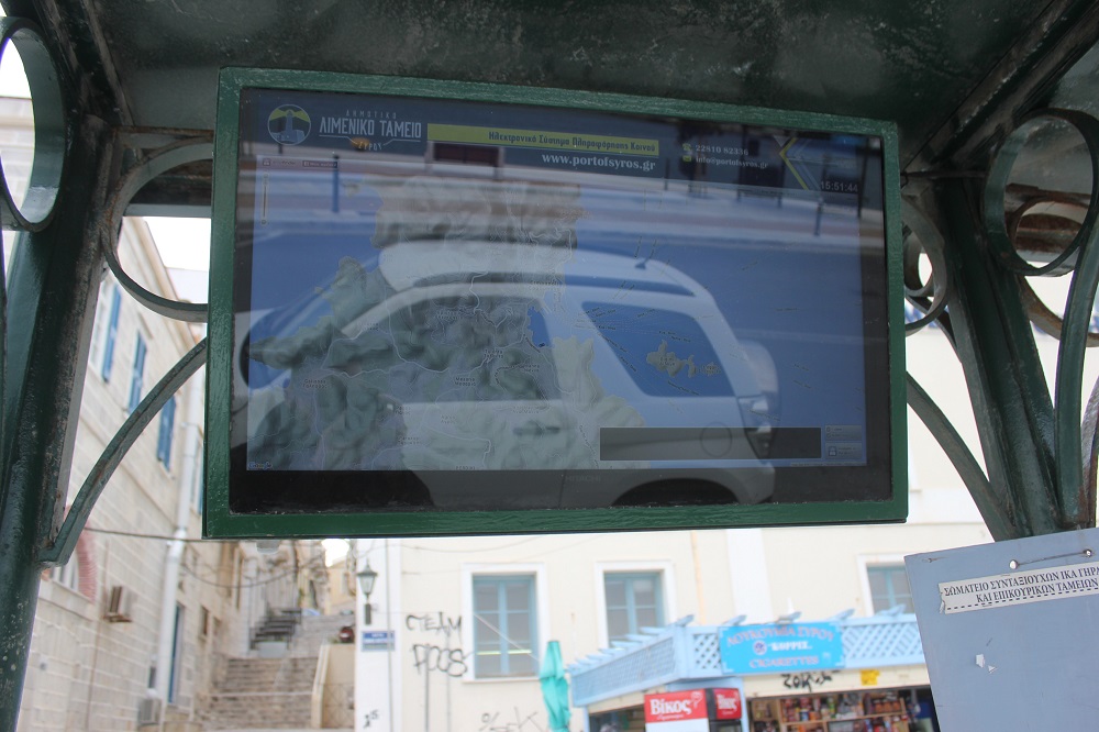 Πρόκειται για μία ενέργεια του Δημοτικού Λιμενικού Ταμείου Σύρου, η οποία μεριμνά για την ενημέρωση τόσο των δημοτών σχετικά με τις προγραμματισμένες διαδρομές της αστικής συγκοινωνίας, όσο όμως και για την πληροφόρηση των επισκεπτών σε επίπεδο πολιτιστικής δραστηριότητας στο νησί.