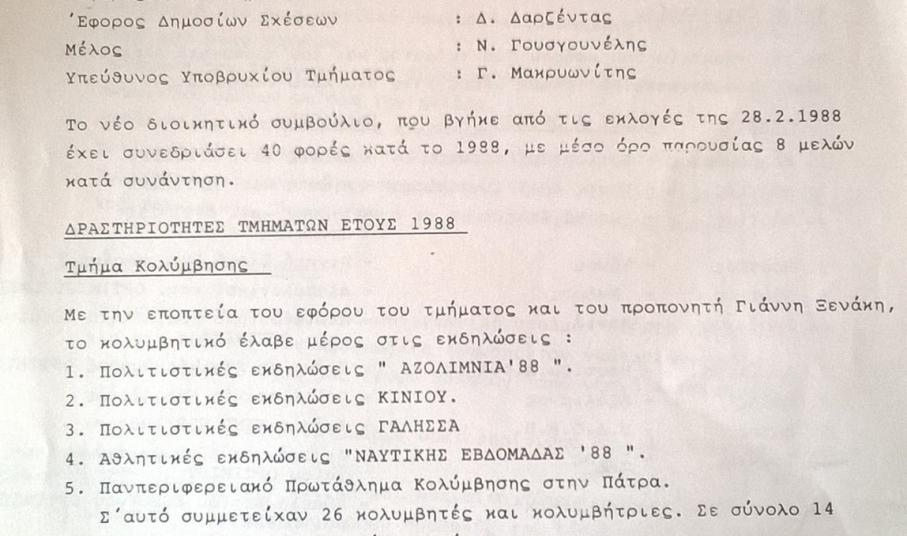 Επιβάλλεται να υπογραμμισθεί πως, υπήρξε ο μακροβιότερος πρόεδρος του ΝΟΣ από το 1980 έως το 1989 (τρεις τριετίες) ενώ επιπλέον ήταν από τους ιδρυτές της ΕΠΣ Κυκλάδων και μέλος του ΕΑΣ ΣΕΓΑΣ Κυκλάδων, στήριζε τον Πανναξιακό και αποτέλεσε ένα εκ των ιδρυτικών μελών του Ναυτικού Ομίλου Νάξου. Πέραν των διακρίσεων που είχε αποσπάσει από την Κολυμβητική και Ποδοσφαιρική Ομοσπονδία, είχε βραβευθεί και από την Ομοσπονδία Υδατοσφαίρισης, ενώ πλέον, στη μνήμη του, προγραμματίζονται να πραγματοποιηθούν πολλές εκδηλώσεις από αθλητικούς συλλόγους των Κυκλάδων. Εξ αυτών, η σπουδαιότερη προγραμματίζεται για τους επόμενους μήνες εκ μέρους του ΝΟΣ, προκειμένου να έρθουν στο προσκήνιο ντοκουμέντα της προσωπικής πορείας του, μέρος των οποίων αναδεικνύονται από το φωτογραφικό υλικό που περιήλθε στη διάθεση της εφημερίδας.
