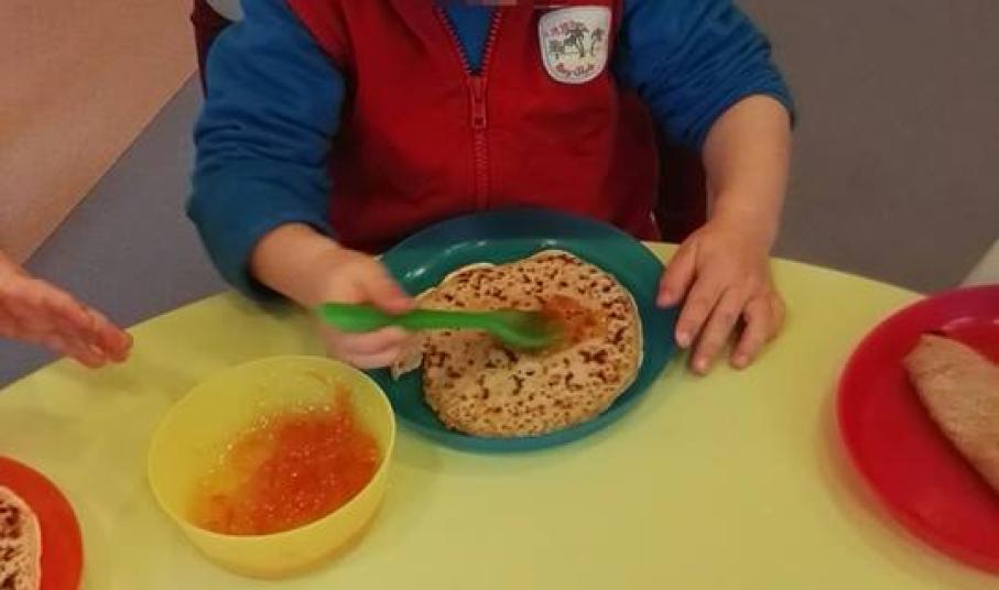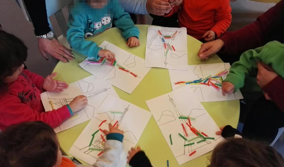 Την όρεξη των λιλιπούτειων μαθητών για το πλούσιο πρόγραμμα δραστηριοτήτων που οργάνωσε και επιμελήθηκε η υπεύθυνη του «Αερόστατου» Χριστίνα Πρίντεζη, άνοιξε ένα νοστιμότατο πρωινό, που περιλάμβανε γαλλικές κρέπες με σπιτική μαρμελάδα. Στη συνέχεια, τα παιδιά είδαν τον χάρτη και μιλώντας για την απόσταση μεταξύ των χωρών, έμαθαν ότι η Αμέλ ήρθε στην Ελλάδα με αεροπλάνο. Αφού είδαν και παρατήρησαν καλά τη σημαία της χώρας της, εντόπισαν διαφορές και ομοιότητες ανάμεσα στην ελληνική και τη γαλλική γλώσσα. Δεν παρέλειψαν μάλιστα να καλημερίσουν την Αμέλ, προσφωνώντας το οικείο προς την ίδια «bonjour». Για να τους ευχαριστήσει, η Αμέλ τους έμαθε το γαλλικό τραγουδάκι «Alouette, gentille alouette». Ενθουσιασμένα τα παιδιά της ζητούσαν κι άλλα τραγούδια, σειρά όμως είχε η ετοιμασία μίας κατασκευής για το σήμα κατατεθέν του Παρισιού: τον Πύργο του Άιφελ, στον οποίο τα χρωματιστά καλαμάκια έδωσαν μια παιδική πινελιά.