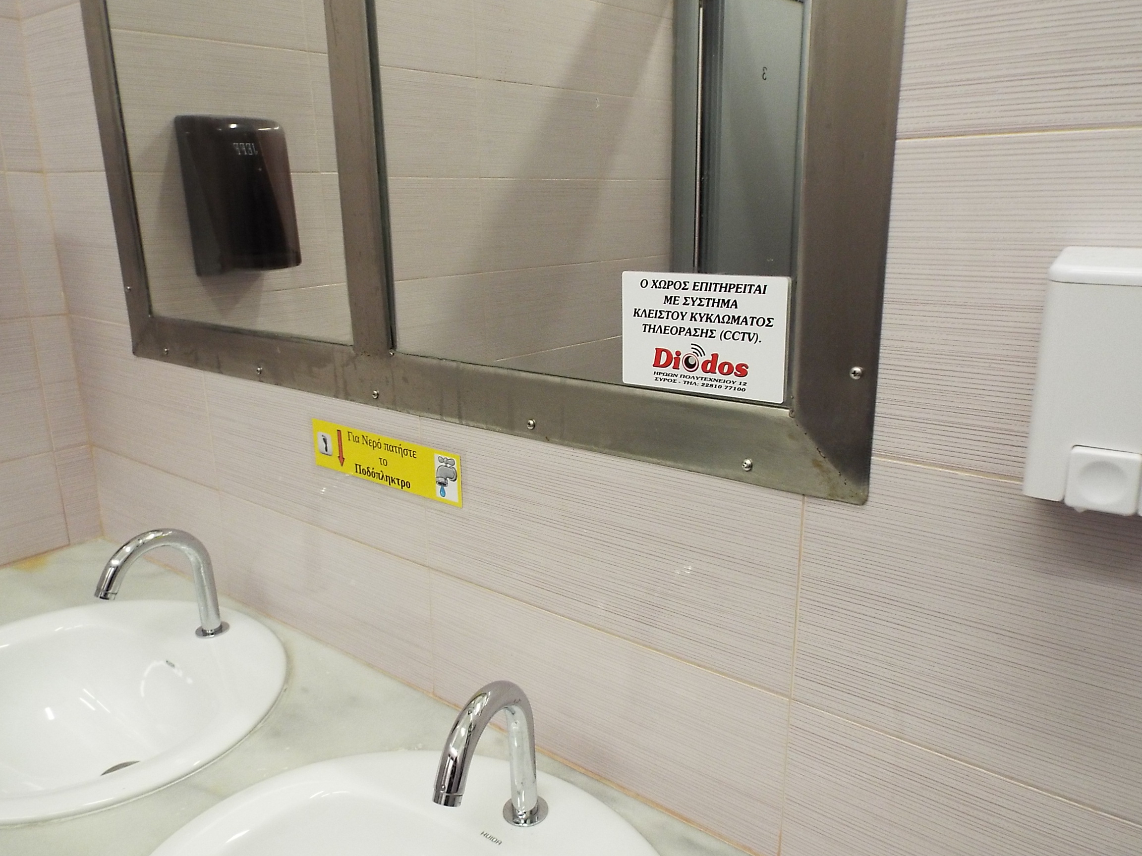 Προκειμένου οι δημόσιες τουαλέτες, να μην περιέλθουν και πάλι στην προ ανακαίνισης κατάστασή τους, με σπασμένα είδη υγιεινής, σημάδια βανδαλισμού σε πόρτες και έπιπλα, αλλά και με την έκλυση αφόρητης σχεδόν δυσοσμίας, ο Δήμος Σύρου – Ερμούπολης προχώρησε σε εγκατάσταση καμερών καταγραφής στον εξωτερικό χώρο, οι οποίες εστιάζουν αποκλειστικά και μόνον στην είσοδο των χώρων. Σύμφωνα με τους αρμόδιους, η κίνηση αυτή αναμένεται να λειτουργήσει αποτρεπτικά για τους επίδοξους... βανδάλους, ενώ θα συμβάλλει στη διαδικασία επιβολής κυρώσεων, για όσους επιμείνουν να αγνοούν τις προειδοποιήσεις ενάντια στην καταστροφή της δημόσιας περιουσίας.