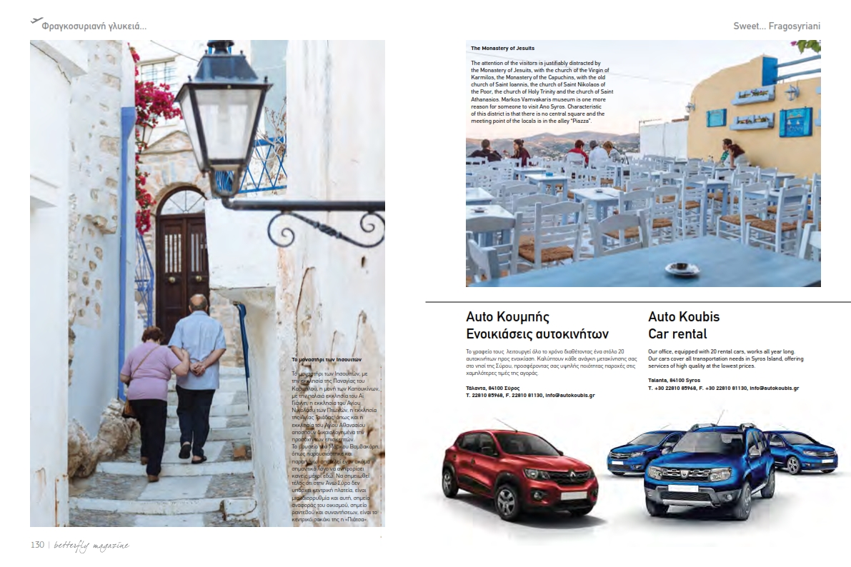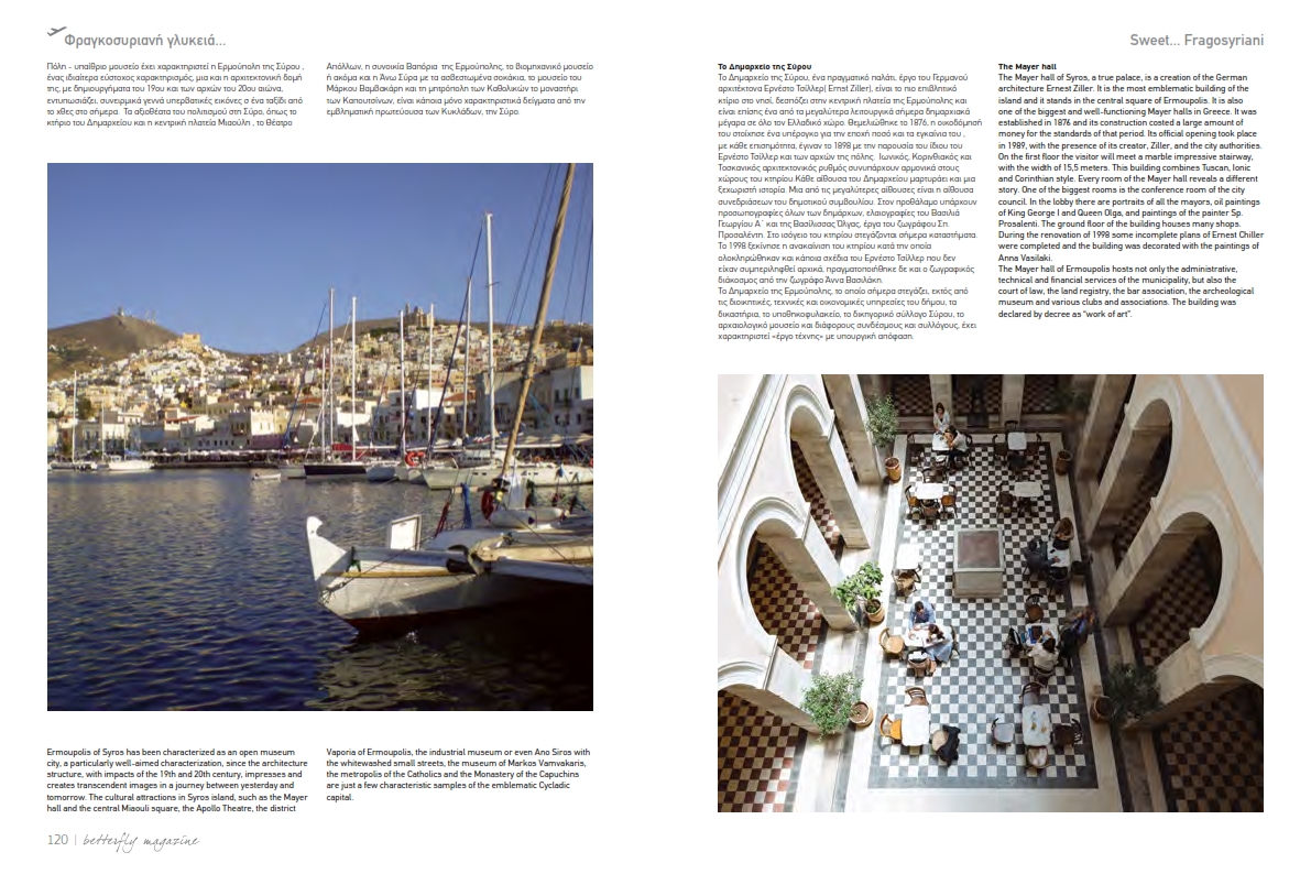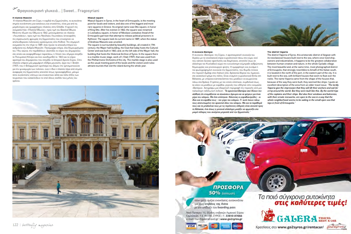 Ο Δήμος Σύρου - Ερμούπολης ευχαριστεί θερμά την αεροπορική εταιρεία Astra Airlines για τη σπουδαία πρωτοβουλία της να αναδείξει, χωρίς οικονομικό κόστος για τον ίδιο, την ομορφιά, την ιστορία και τον πολιτισμό της Σύρου, μέσα από ένα πολυσέλιδο αφιέρωμα εξαιρετικής ποιότητας στο τεύχος Φεβρουαρίου – Μαΐου του “Betterfly”, του εξειδικευμένου εντύπου για θεματικό τουρισμό της Astra Airlines, το οποίο διανέμεται στους επιβάτες της αεροπορικής εταιρείας.