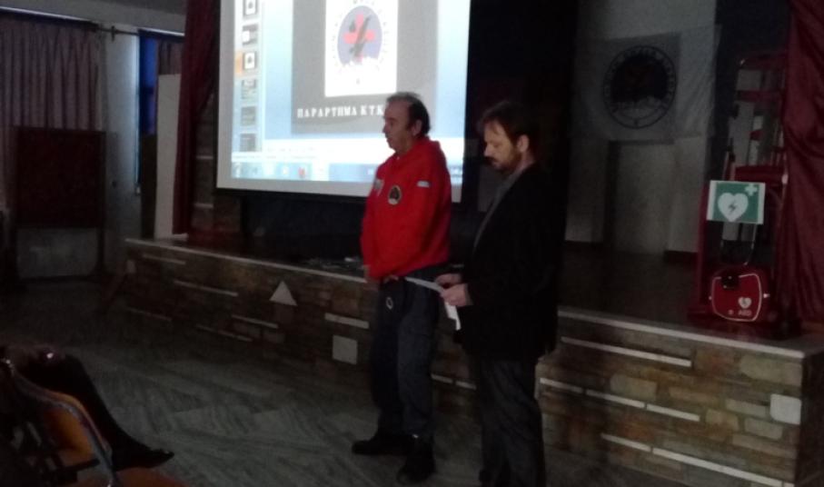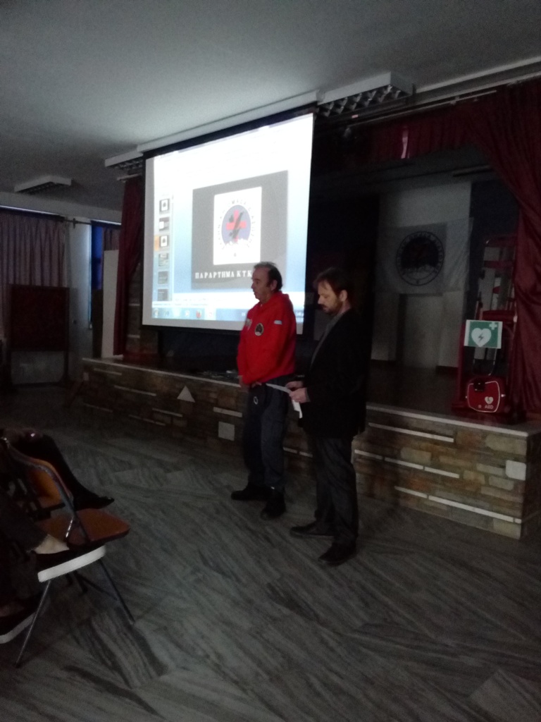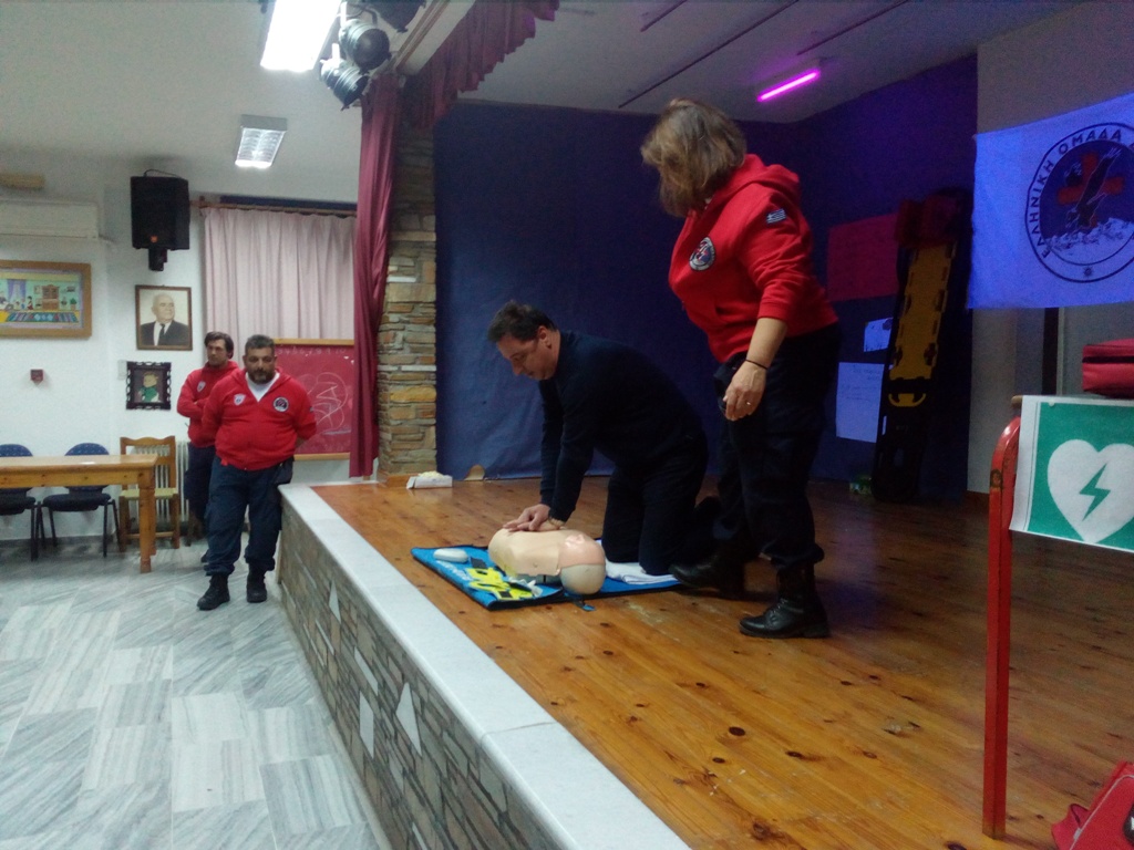 Στη συνέχεια τα Πιστοποιημένα μέλη της ΕΟΔ παρουσίασαν την τεχνική Καρδιοαναπνευστικής Αναζωογόνησης (ΚΑΡΠΑ) με χρήση Αυτόματου Εξωτερικού Απινιδωτή, τη Θέση Ασφαλείας (Ανάνηψης), τρόπους αντιμετώπισης Πνιγμονής και τέλος τον ασφαλή τρόπο ακινητοποίησης τραυματία.