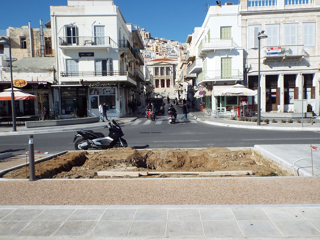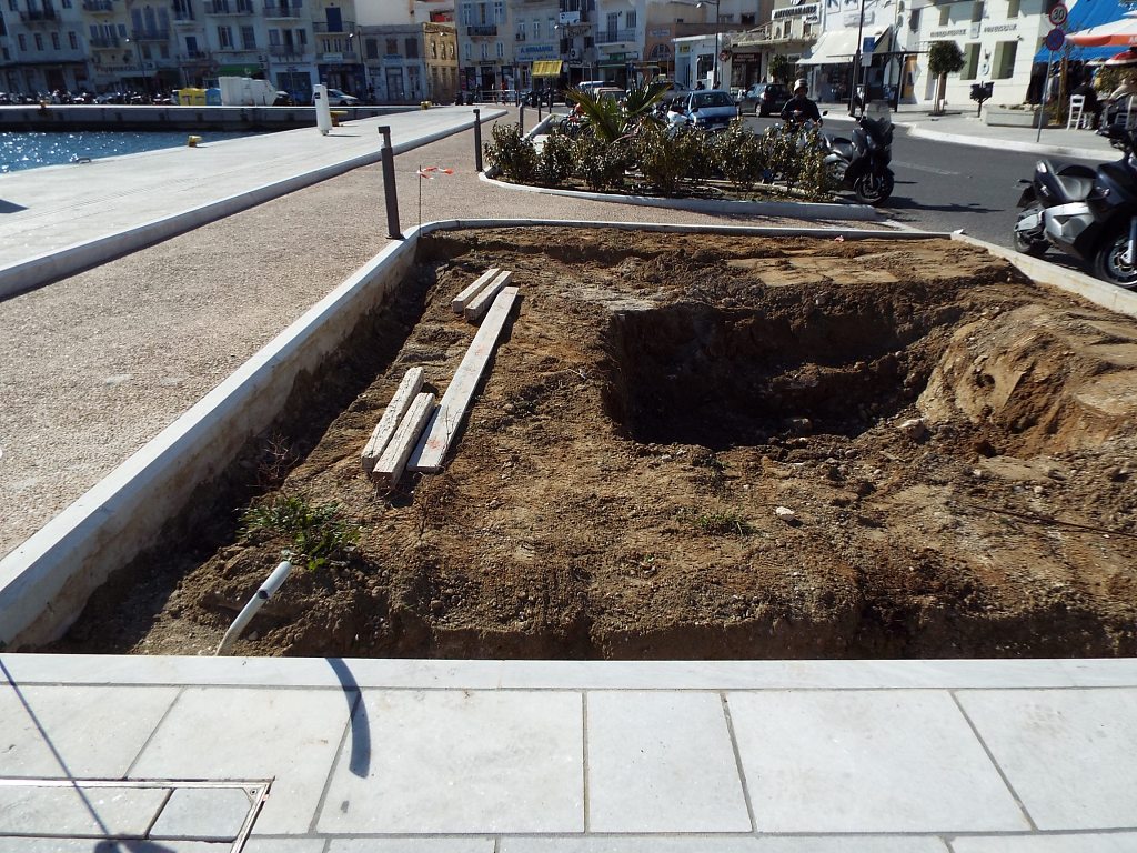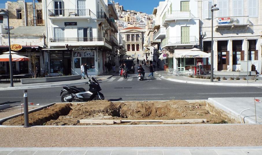Η έναρξη των παρεμβάσεων που απαιτούνται, για την επιστροφή του ιστορικού αγάλματος στη θέση του, επί του λιμένα και στην ευθεία της κύριας εισόδου του Δημαρχιακού Μεγάρου της Ερμούπολης, έγινε με την οριοθέτηση του σχεδίου και την εκσκαφή του σημείου, το πρωί της Πέμπτης.