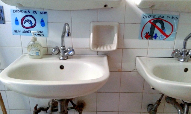 Τον Ιανουάριο ερεύνησαν τις εγκαταστάσεις νερού στο σχολείου τους: αν λειτουργούν καλά ή όχι οι βρύσες και τα καζανάκια και αν γίνεται σωστή χρήση τους από τους μαθητές. Παρατήρησαν πως οι περισσότερες βρύσες δεν κλείνουν καλά ή θέλουν πολύ δυνατό σφίξιμο και γι’ αυτό οι περισσότεροι μαθητές τις αφήνουν να στάζουν ή να τρέχουν.