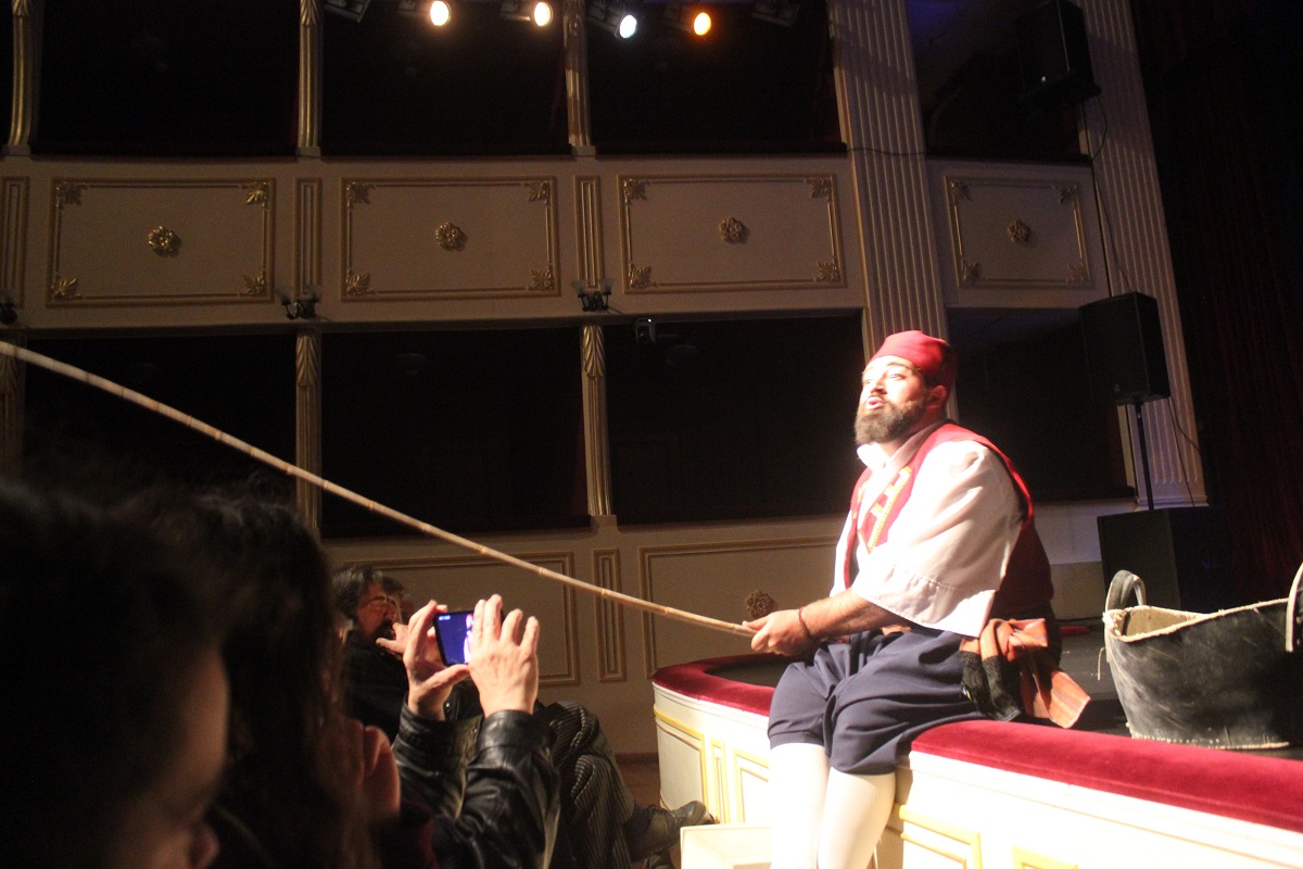 Στη συνέχεια, το κοινό παρακολούθησε ένα απόσπασμα από το έργο «Θαλασσινή Πολιτεία» του Νίκου Σφυρόερα, το οποίο παρουσιάστηκε από τον ΘΕΠΟΣ «Απόλλων» στο πλαίσιο του εορτασμού των 190 χρόνων από την ονοματοδοσία της Ερμούπολης. Στο ρόλο του Τζουάννε ο Δημήτρης Καπέλλας και στο ρόλο της αγαπημένης του Σπεράντζας, η Ζωή Γεωργίου.