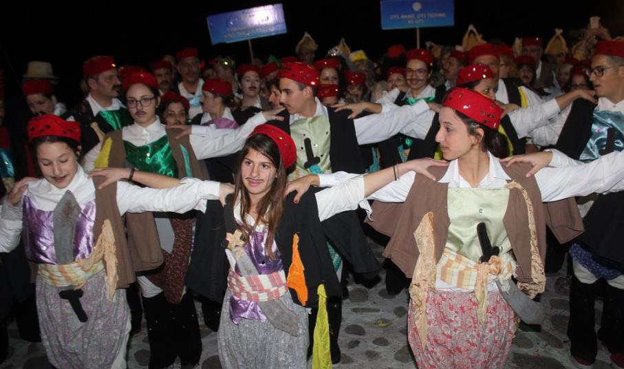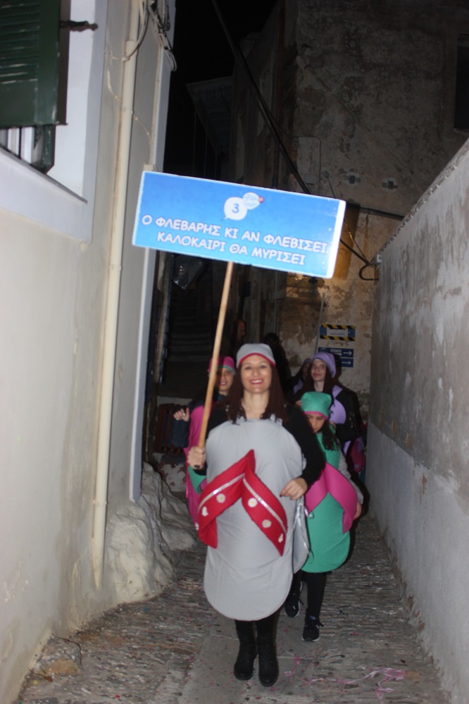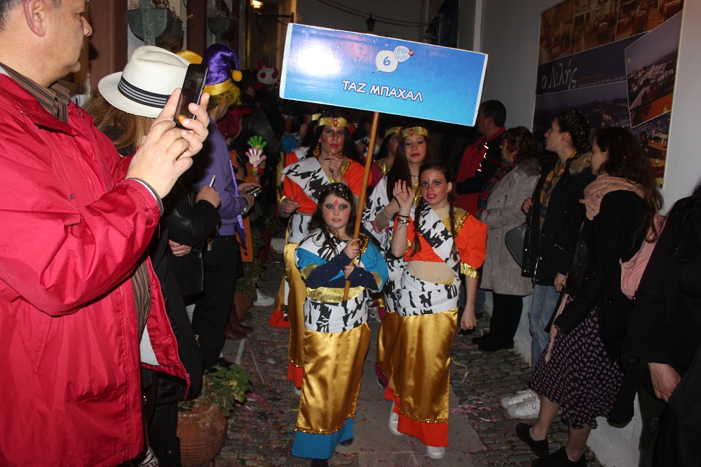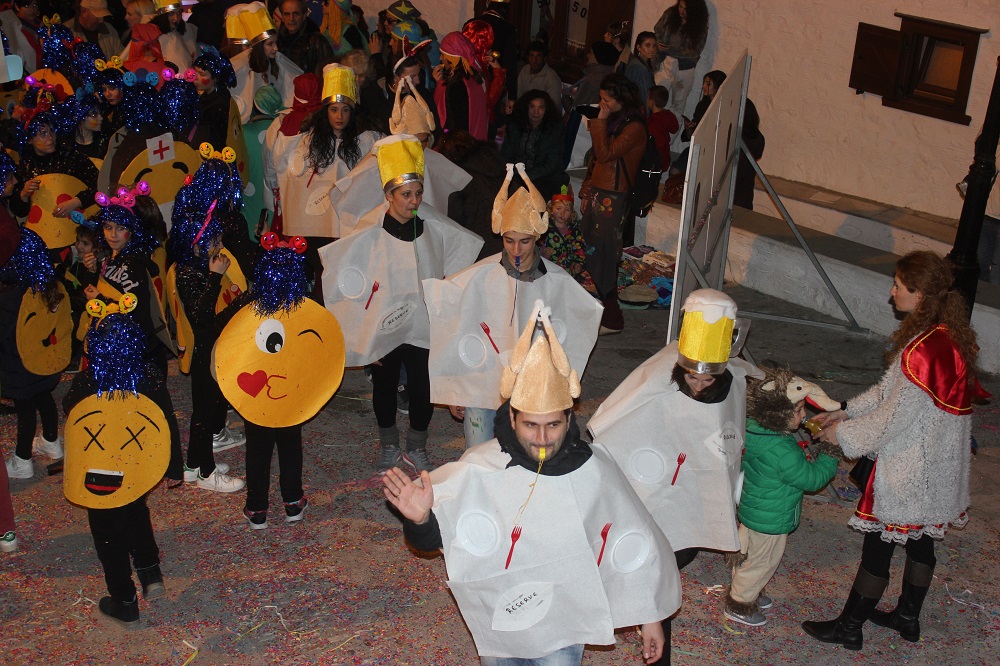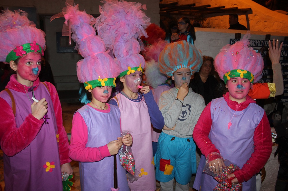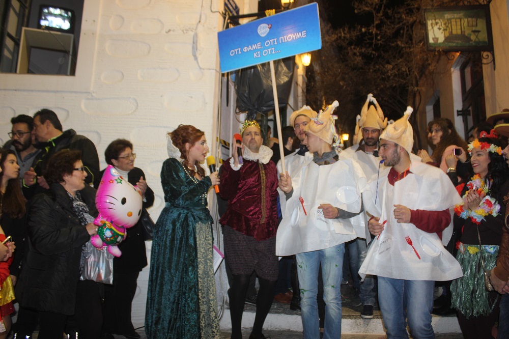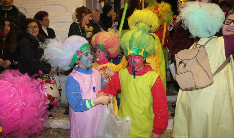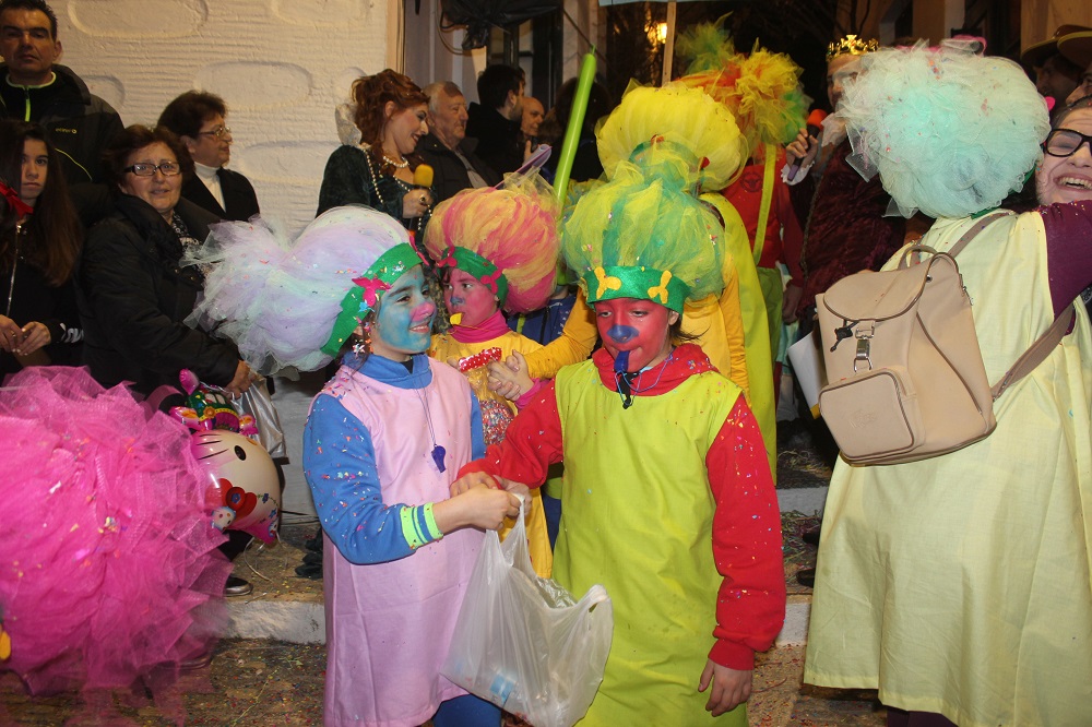 Λίγο μετά τις οχτώ ξεκίνησε η παρέλαση των ομάδων στον μεσαιωνικό οικισμό, η καρδιά του οποίου χτυπούσε από νωρίς σε καρναβαλικούς ρυθμούς, με επιχειρήσεις και κατοίκους να υποδέχονται μικρούς και μεγάλους επισκέπτες.