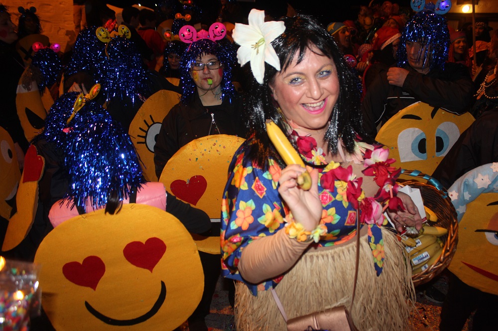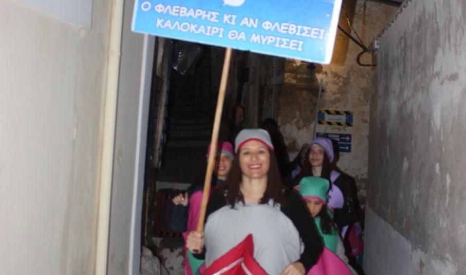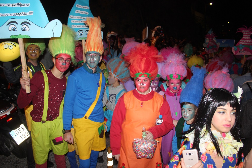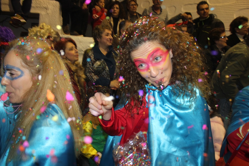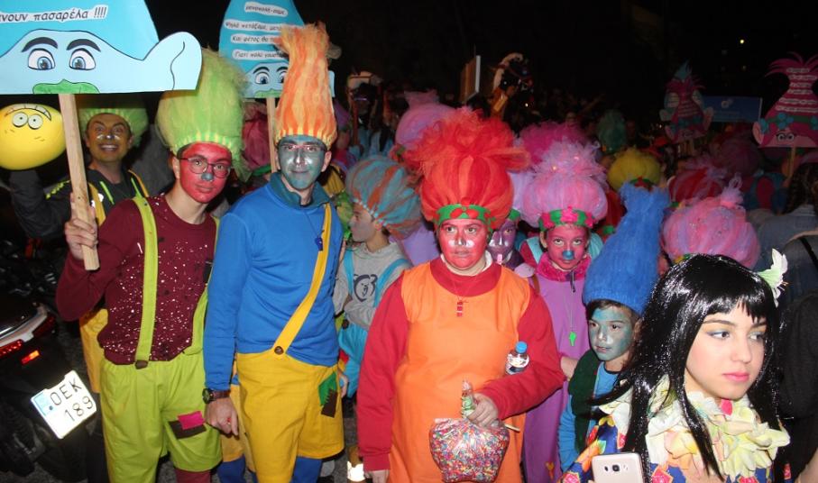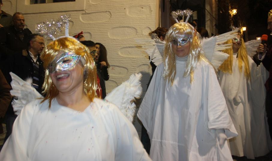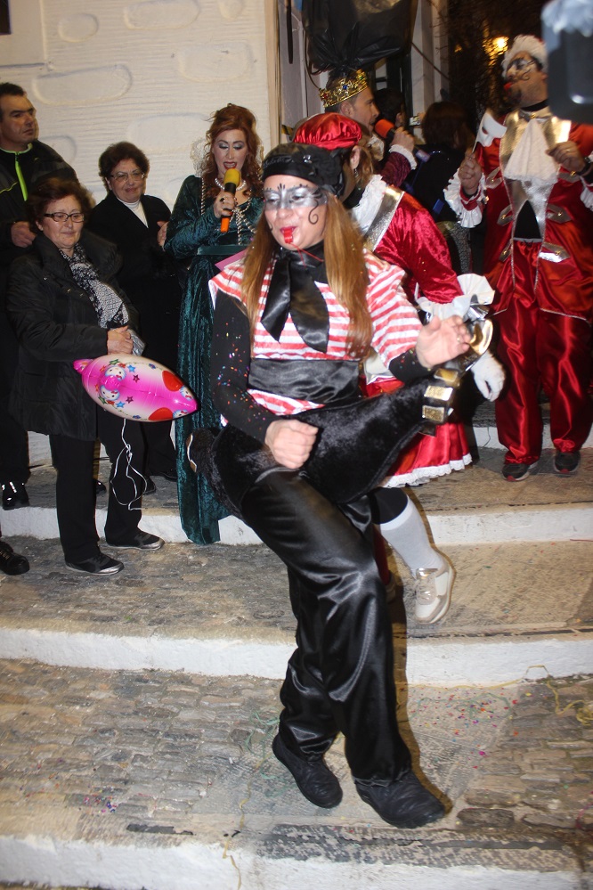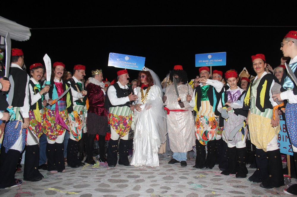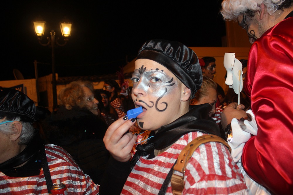 Λίγο μετά τις οχτώ ξεκίνησε η παρέλαση των ομάδων στον μεσαιωνικό οικισμό, η καρδιά του οποίου χτυπούσε από νωρίς σε καρναβαλικούς ρυθμούς, με επιχειρήσεις και κατοίκους να υποδέχονται μικρούς και μεγάλους επισκέπτες.