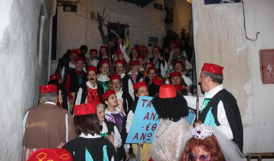 Όσοι έδωσαν ραντεβού στην Πιάτσα της Άνω Σύρου είχαν την ευκαιρία να πάρουν μία πρώτη γεύση από τις “εκπλήξεις” που επιφυλάσσουν στους φίλους τους οι 17 καρναβαλικές ομάδες.