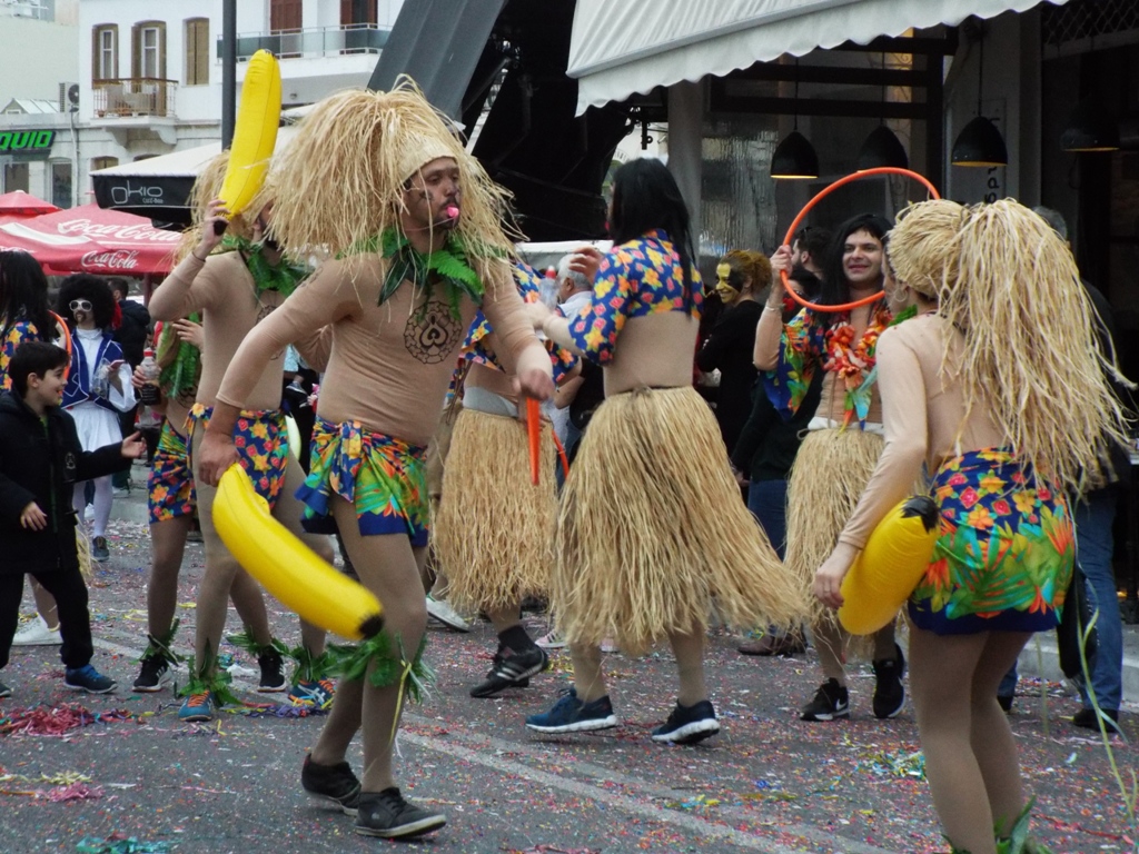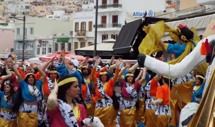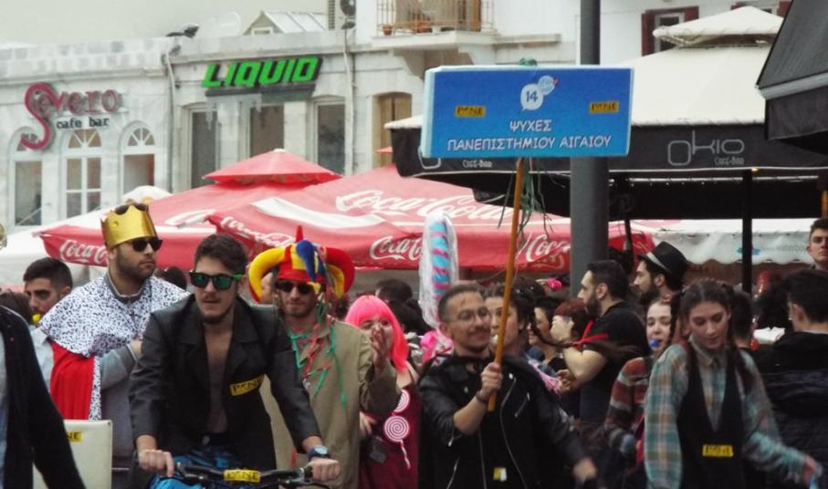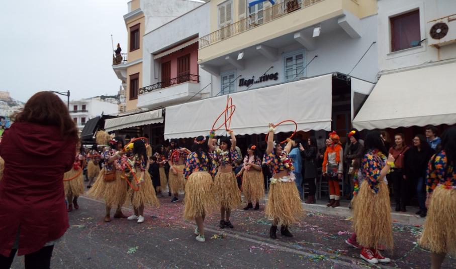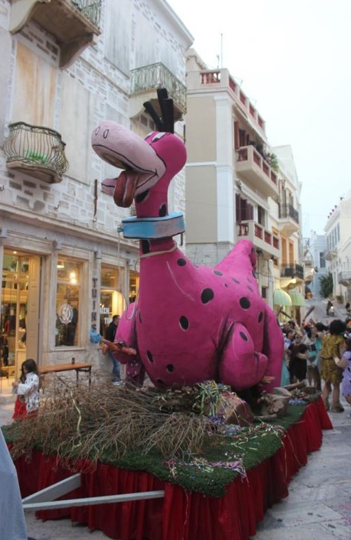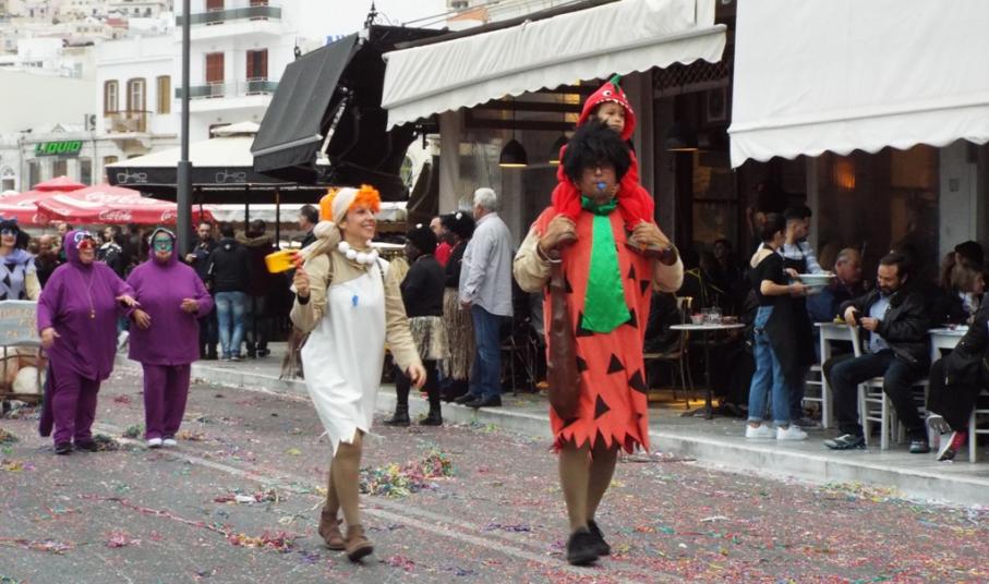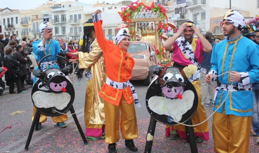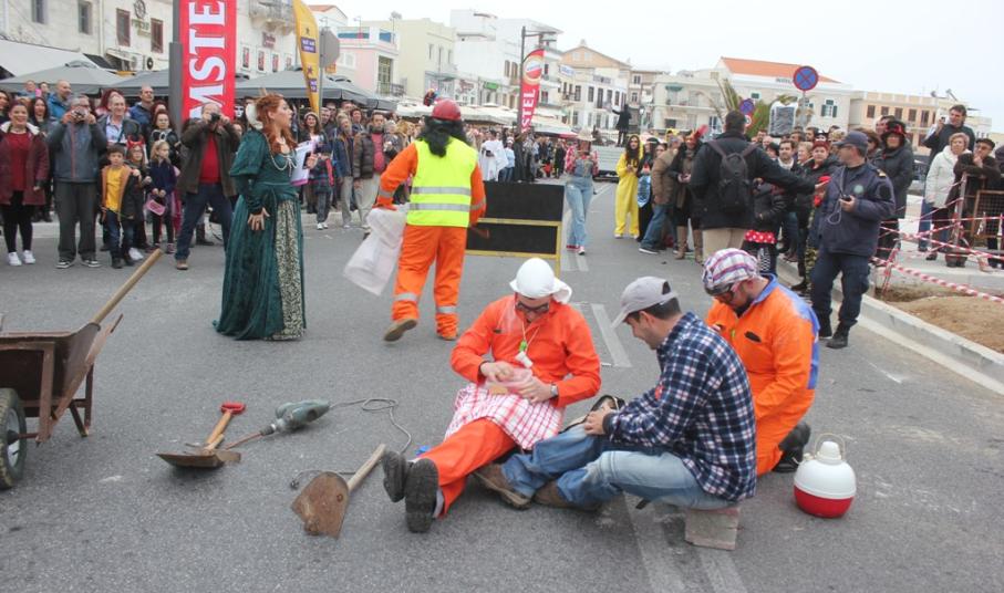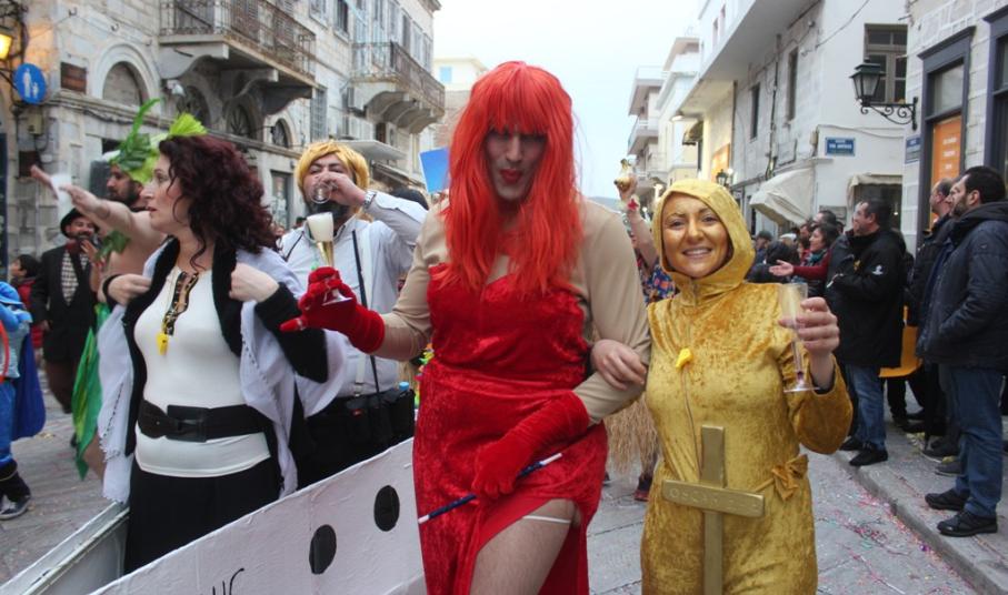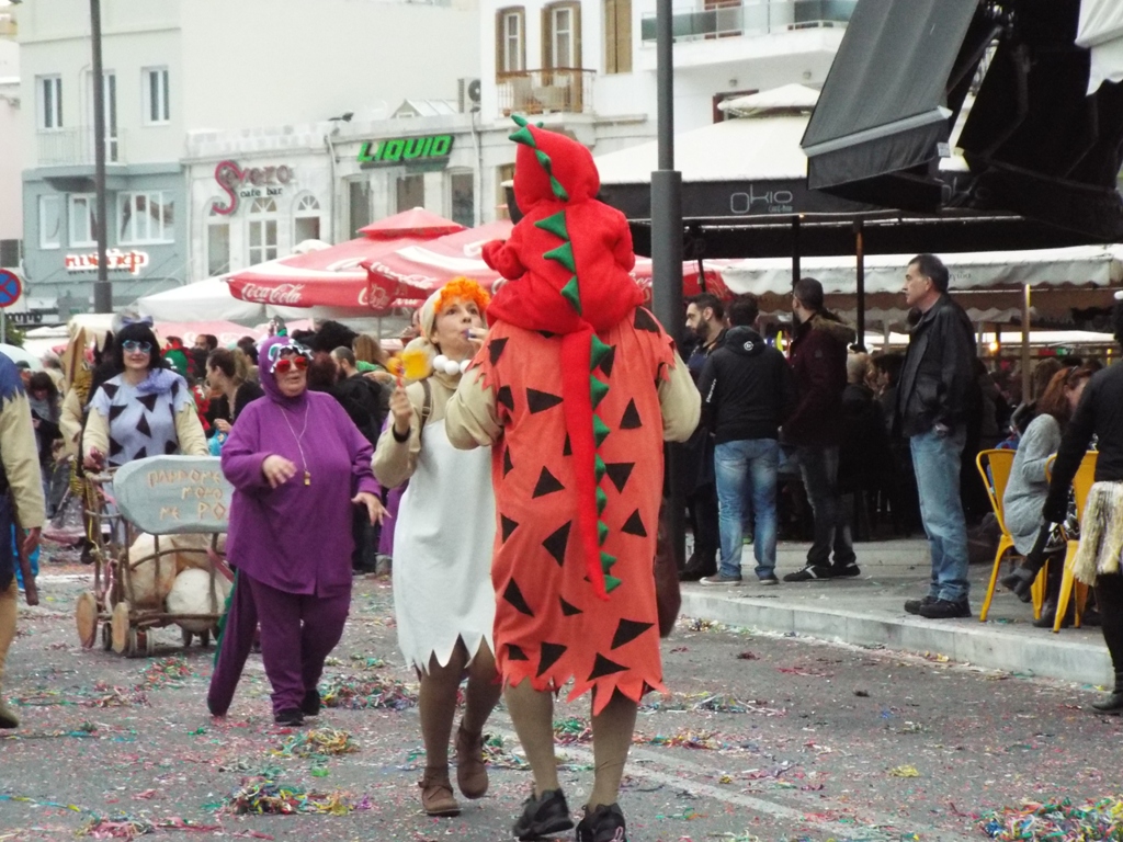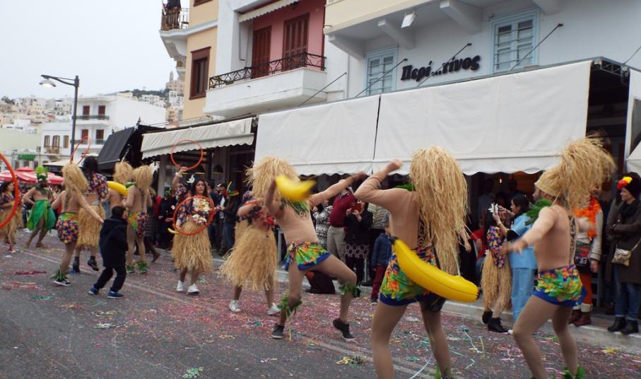 Στη “Χωνολουλού” πήγαν φέτος οι Ωραίοι που έχουν χρέη, ενώ τα αγγελούδια της Απάνω Χώρας έριξαν τις ζεϊμπεκιές τους στην πλατεία Μιαούλη. Από το διάστημα κατέβηκαν φέτος οι Vourvourigans για έναν διαφορετικό πόλεμο των άστρων και από τα προϊστορικά Χάλαρα κατέφτασαν οι Φλίντστοουνς της Ομάδας Πεζοπόρων Σύρου. Οι “Άνω Ποταμών” παρουσίασαν το θέμα “Σουβλάκι Φουέστερν και Πράσσειν Άλογα” και η παρέλαση ολοκληρώθηκε με τις ¨”ψυχές” του Φοιτητικού Συλλόγου του Τμήματος Μηχανικών Σχεδίασης Προϊόντων και Συστημάτων του Πανεπιστημίου Αιγαίου.