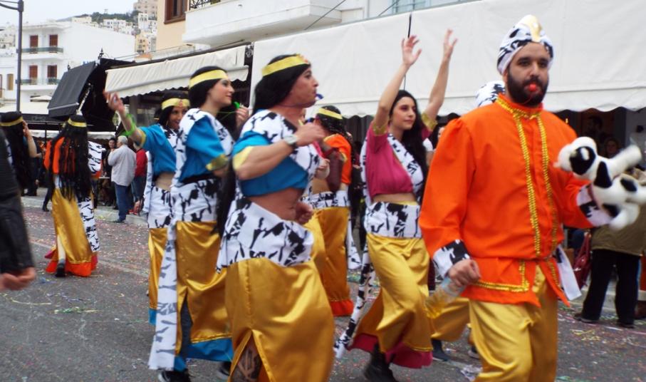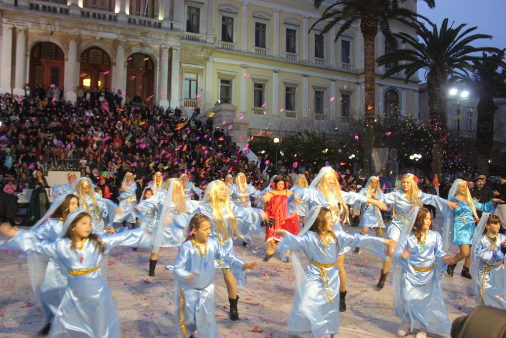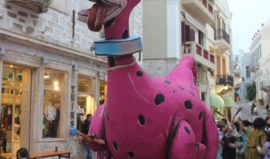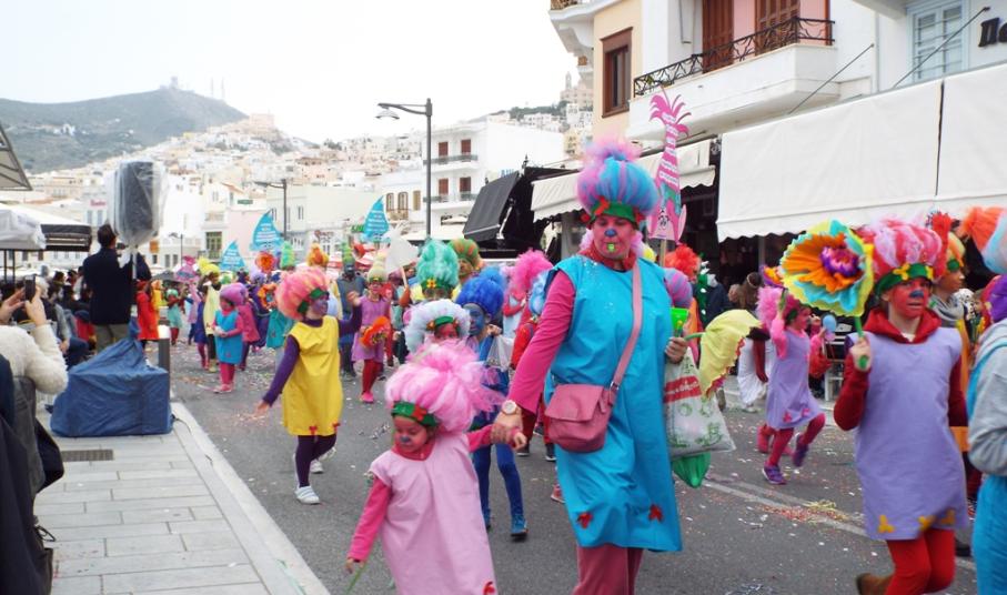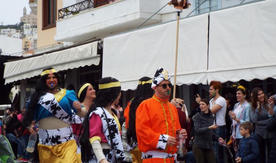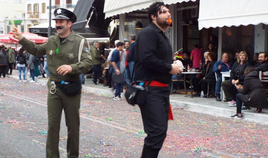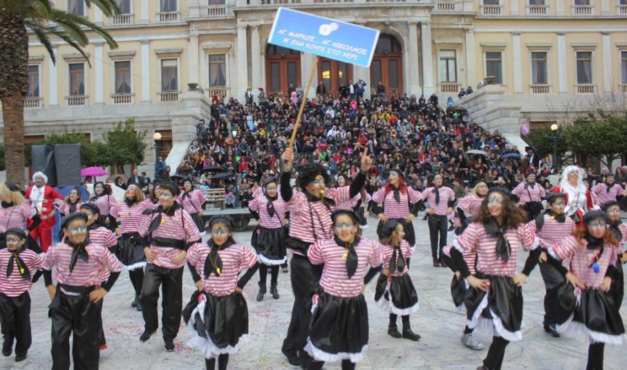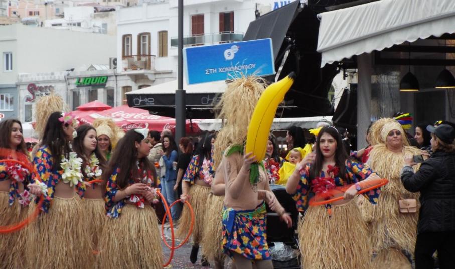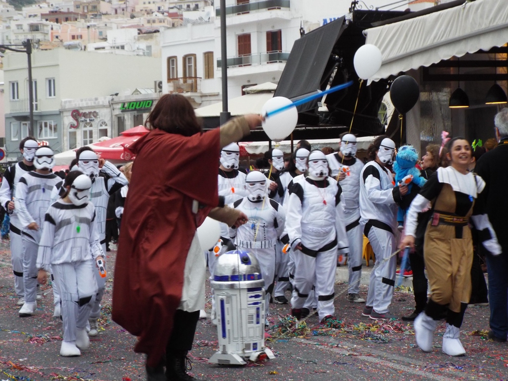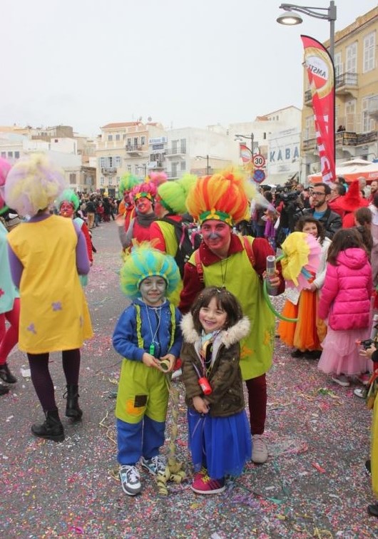 Στη “Χωνολουλού” πήγαν φέτος οι Ωραίοι που έχουν χρέη, ενώ τα αγγελούδια της Απάνω Χώρας έριξαν τις ζεϊμπεκιές τους στην πλατεία Μιαούλη. Από το διάστημα κατέβηκαν φέτος οι Vourvourigans για έναν διαφορετικό πόλεμο των άστρων και από τα προϊστορικά Χάλαρα κατέφτασαν οι Φλίντστοουνς της Ομάδας Πεζοπόρων Σύρου. Οι “Άνω Ποταμών” παρουσίασαν το θέμα “Σουβλάκι Φουέστερν και Πράσσειν Άλογα” και η παρέλαση ολοκληρώθηκε με τις ¨”ψυχές” του Φοιτητικού Συλλόγου του Τμήματος Μηχανικών Σχεδίασης Προϊόντων και Συστημάτων του Πανεπιστημίου Αιγαίου.