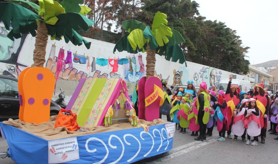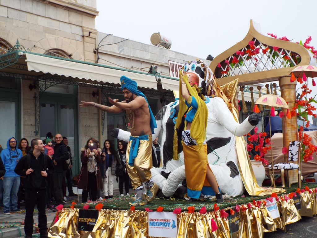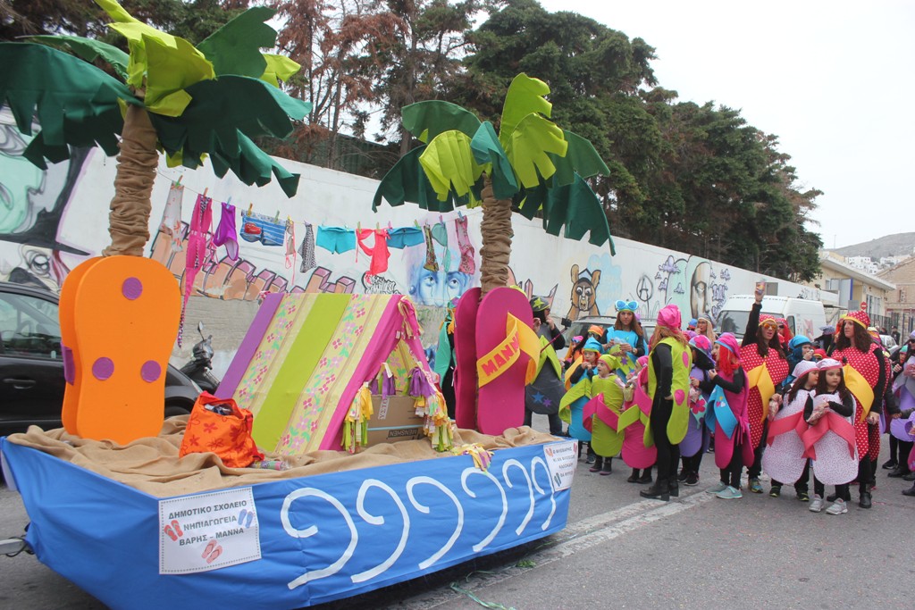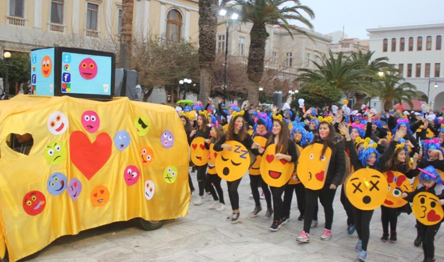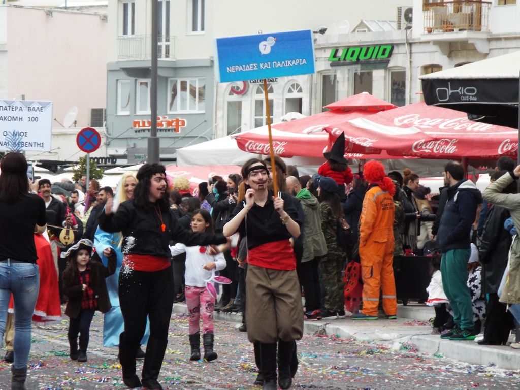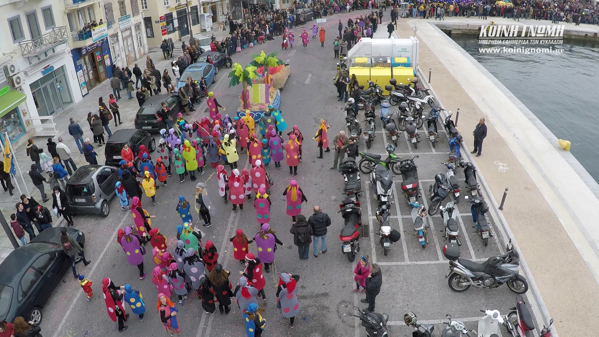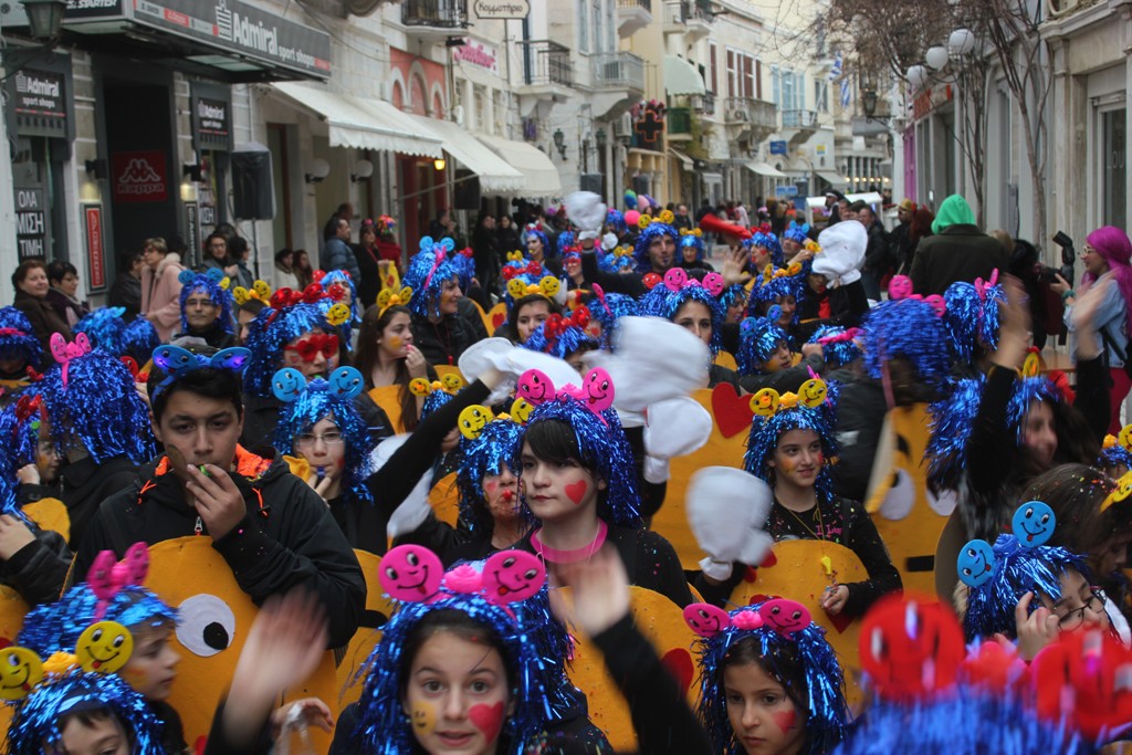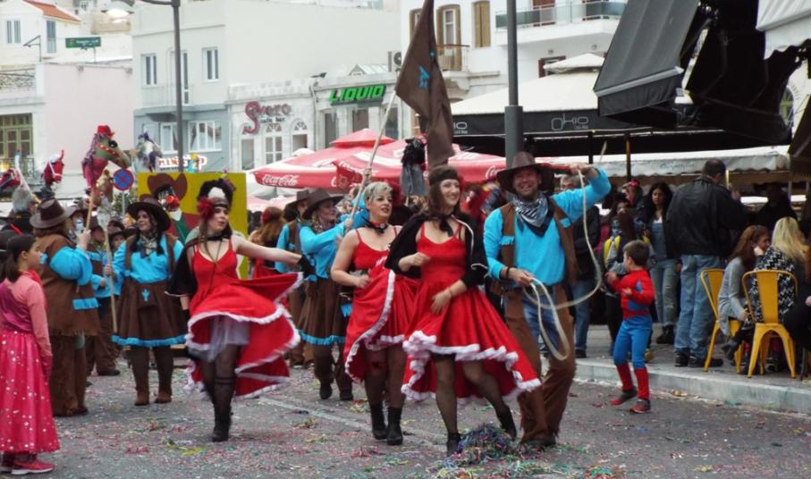 Στη “Χωνολουλού” πήγαν φέτος οι Ωραίοι που έχουν χρέη, ενώ τα αγγελούδια της Απάνω Χώρας έριξαν τις ζεϊμπεκιές τους στην πλατεία Μιαούλη. Από το διάστημα κατέβηκαν φέτος οι Vourvourigans για έναν διαφορετικό πόλεμο των άστρων και από τα προϊστορικά Χάλαρα κατέφτασαν οι Φλίντστοουνς της Ομάδας Πεζοπόρων Σύρου. Οι “Άνω Ποταμών” παρουσίασαν το θέμα “Σουβλάκι Φουέστερν και Πράσσειν Άλογα” και η παρέλαση ολοκληρώθηκε με τις ¨”ψυχές” του Φοιτητικού Συλλόγου του Τμήματος Μηχανικών Σχεδίασης Προϊόντων και Συστημάτων του Πανεπιστημίου Αιγαίου.