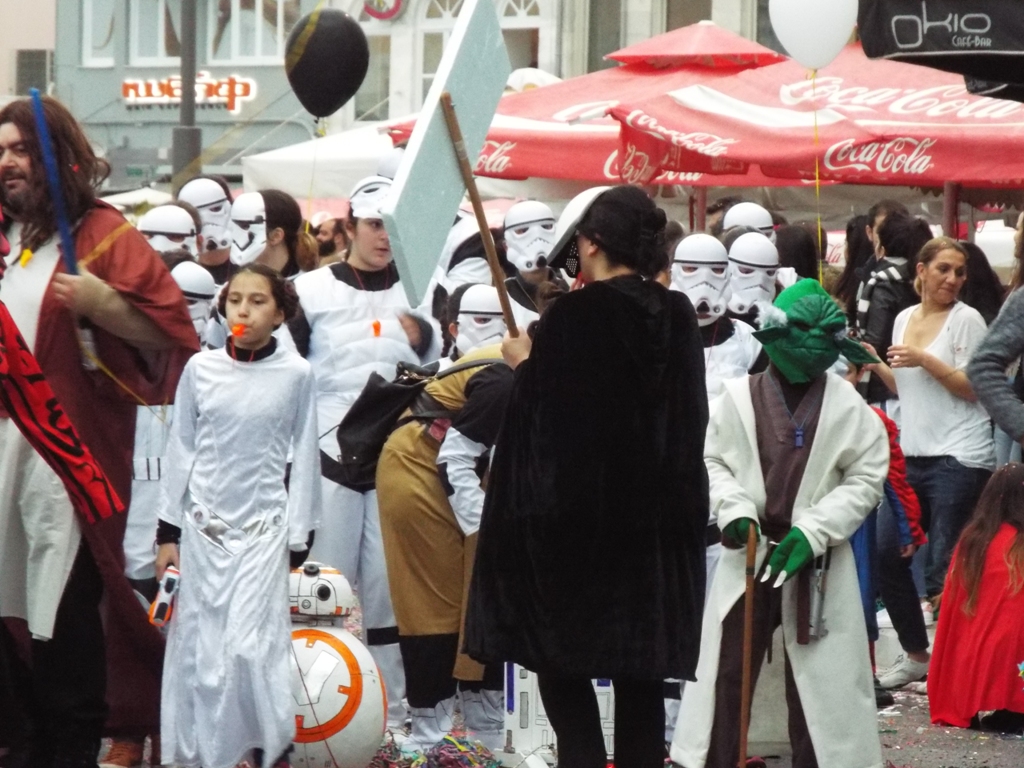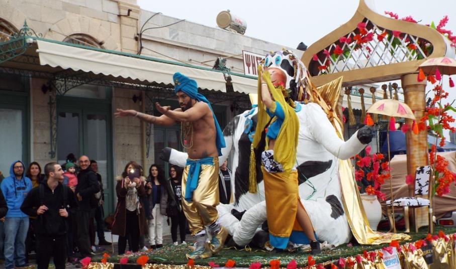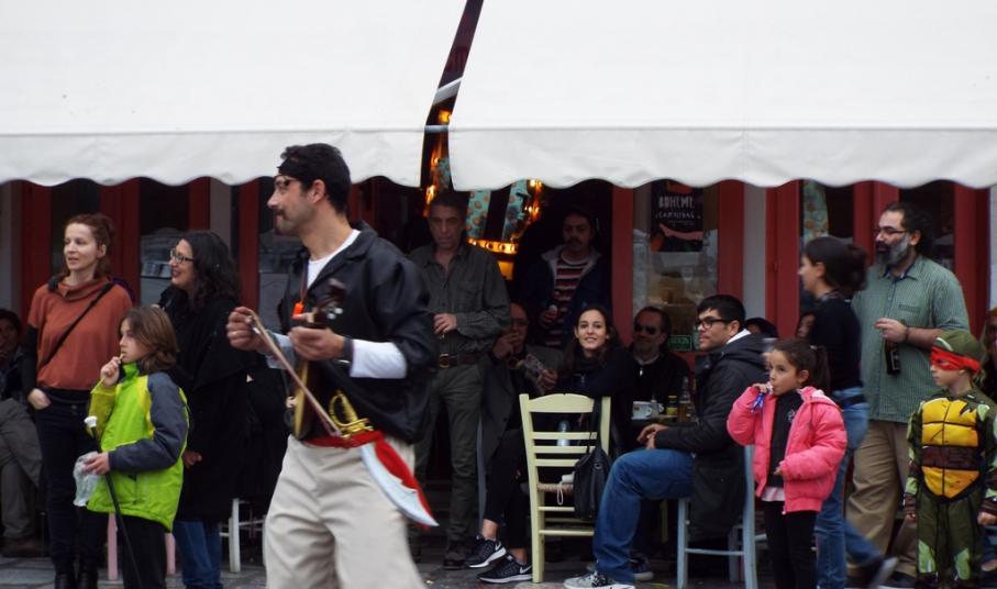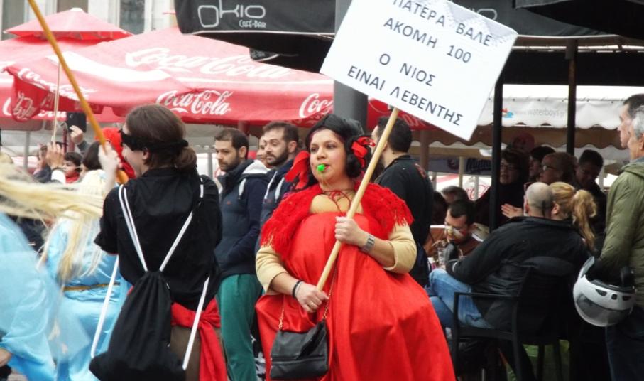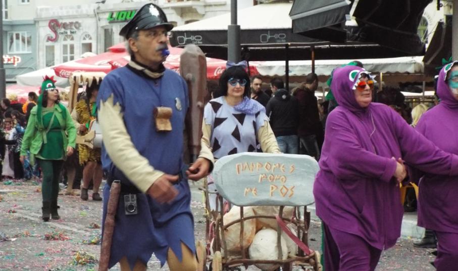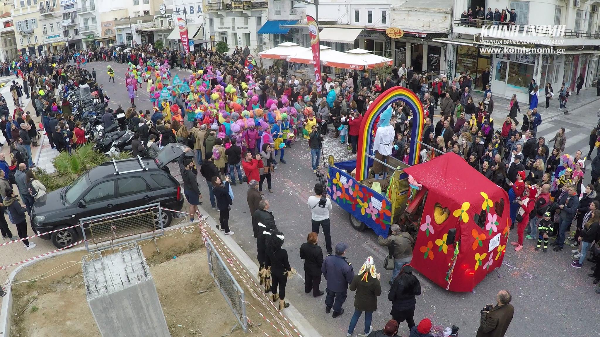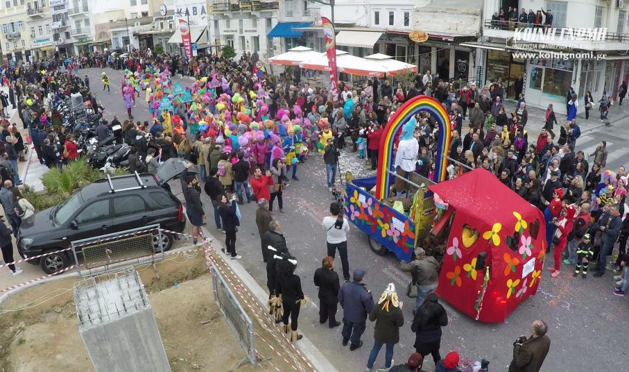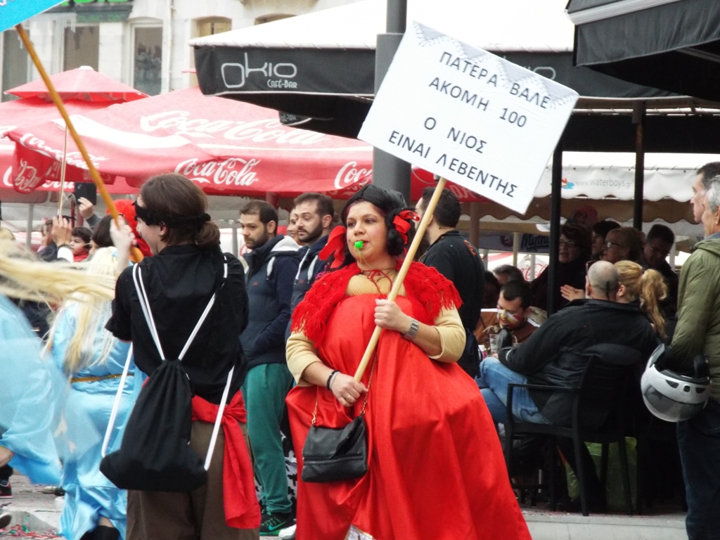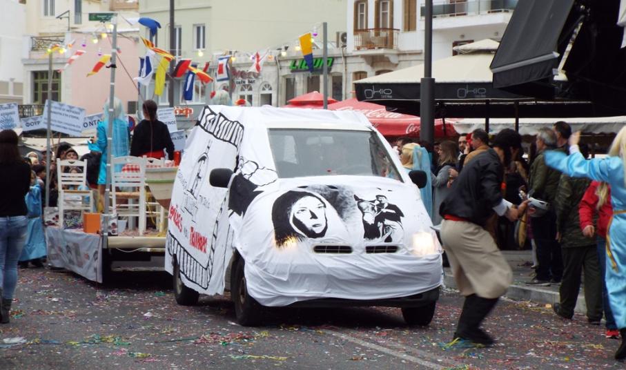 Στη “Χωνολουλού” πήγαν φέτος οι Ωραίοι που έχουν χρέη, ενώ τα αγγελούδια της Απάνω Χώρας έριξαν τις ζεϊμπεκιές τους στην πλατεία Μιαούλη. Από το διάστημα κατέβηκαν φέτος οι Vourvourigans για έναν διαφορετικό πόλεμο των άστρων και από τα προϊστορικά Χάλαρα κατέφτασαν οι Φλίντστοουνς της Ομάδας Πεζοπόρων Σύρου. Οι “Άνω Ποταμών” παρουσίασαν το θέμα “Σουβλάκι Φουέστερν και Πράσσειν Άλογα” και η παρέλαση ολοκληρώθηκε με τις ¨”ψυχές” του Φοιτητικού Συλλόγου του Τμήματος Μηχανικών Σχεδίασης Προϊόντων και Συστημάτων του Πανεπιστημίου Αιγαίου.