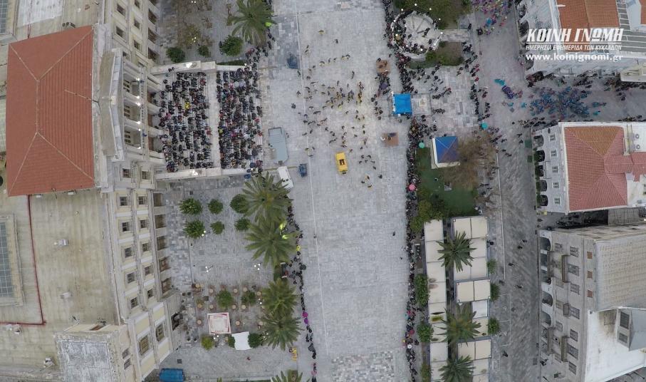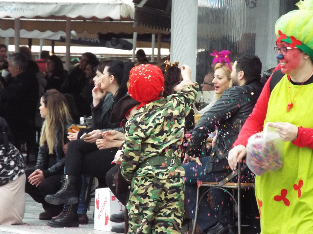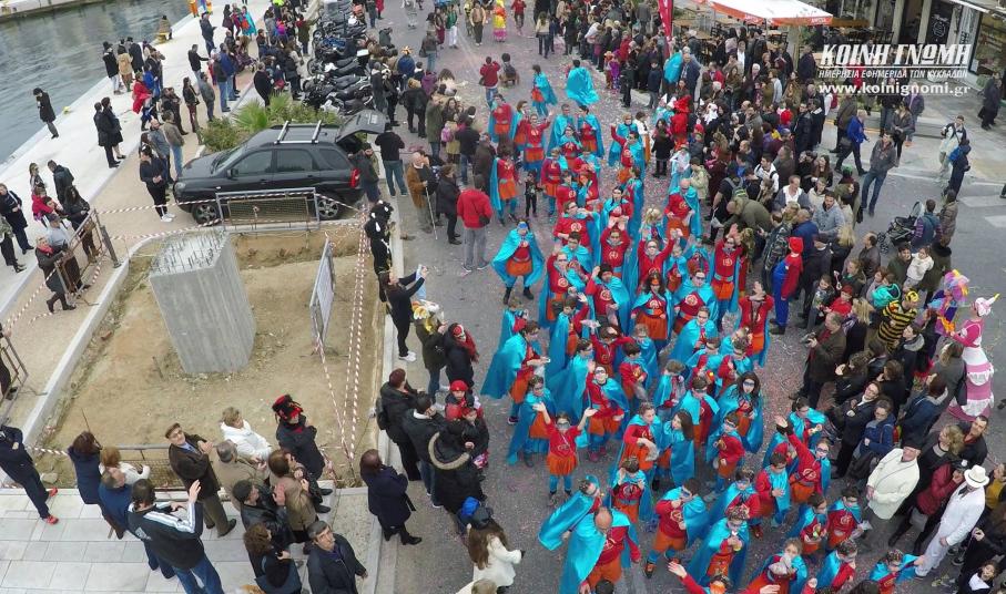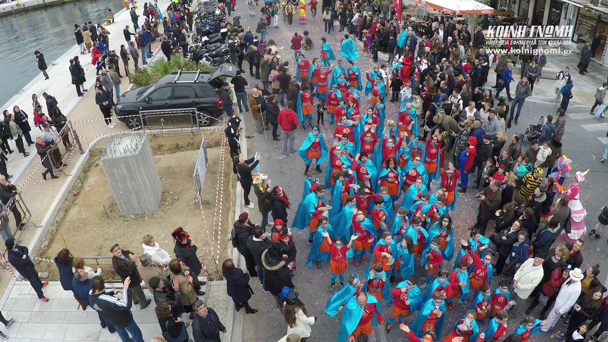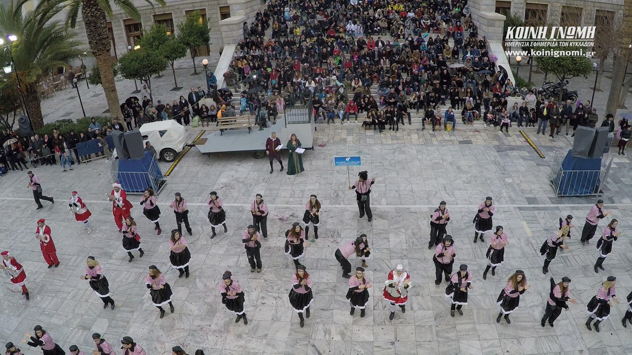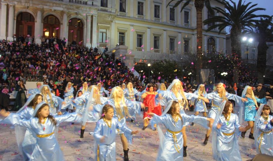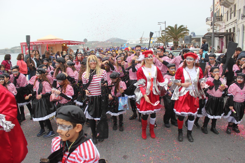 Η μεγάλη παρέλαση των καρναβαλικών ομάδων στους δρόμους της Ερμούπολης πραγματοποιήθηκε το απόγευμα της Κυριακής, παρουσία πλήθους κατοίκων και επισκεπτών του νησιού που ενθάρρυναν και αποθέωναν τους συμμετέχοντες με επευφημίες και το ζεστό "χειροκρότημά" τους.