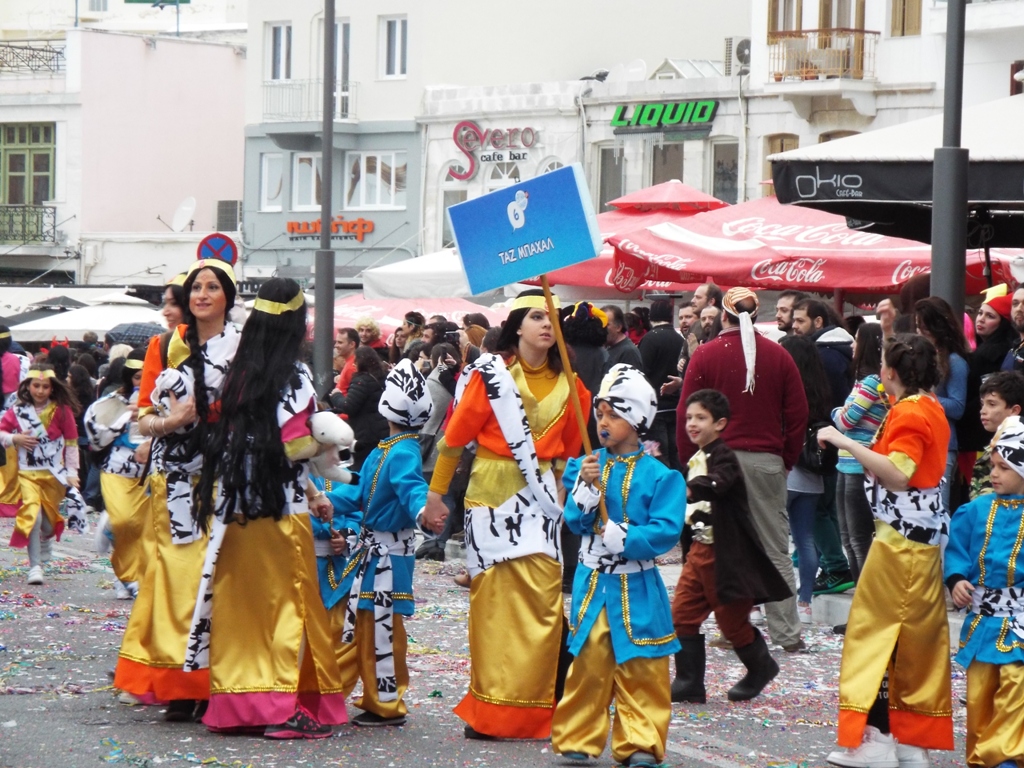 Την παρέλαση των καρναβαλικών ομάδων άνοιξαν τα μέλη του Πολιτιστικού Συλλόγου Στροπώνων Ευβοίας με το θέμα “Ό,τι φάμε, ό,τι πιούμε κι ό,τι...”. Ακολούθησαν οι “Γονδολιέρηδες” του “Αγίου Γεωργίου” και οι “φατσούλες” του 6ου Δημοτικού Σχολείου. Πρόωρα έφεραν το φετινό καλοκαίρι οι “σαγιονάρες” του Δημοτικού Σχολείου και Νηπιαγωγείων Βάρης – Μάννα και αμέσως μετά η Ερμούπολη έγινε πολύχρωμη με τους Ευχούληδες του Δημοτικού Σχολείου Άνω Σύρου. Ακολούθησαν οι “superοχοι” του 4ου Δημοτικού Σχολείου, ενώ οι παιδικές ομάδες ολοκληρώθηκαν με τον “Γυφτομαχαλά από την Χαλάστρα” του Χορευτικού Συλλόγου Χαλάστρας ΚΠΟΔΔ Θεσσαλονίκης και ¨Του Κουτρούλη τον Γάμο” από τον Λαογραφικό Αθλητικό Σύλλογο Μεσολογγίου.