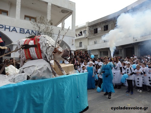 Με μεγάλη επιτυχία έκλεισε και φέτος η περίοδος των αποκριών στα νησιά των Κυκλάδων, όπου πραγματοποιήθηκαν τοπικές καρναβαλικές διοργανώσεις. Από την μικρότερη έως και τη μεγαλύτερη, δεν έλειπε σε καμία περίπτωση το κέφι και το τρελό ξεφάντωμα, αλλά και τα ευφάνταστα και πολλές φορές σατιρικά θέματα στις παρελάσεις.
