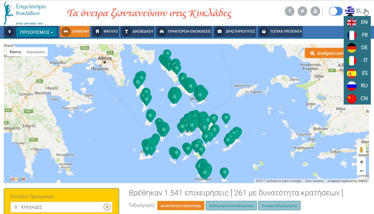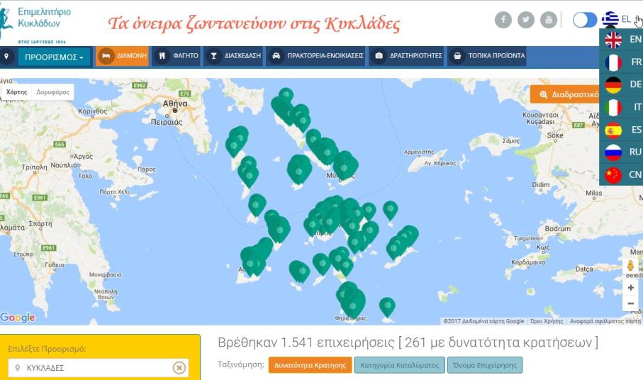 Tα τουριστικά καταλύματα των Κυκλάδων το 2016 είχαν συνολικά περισσότερες από 2.500.000 προβολές, δηλαδή κατά μέσο περισσότερες από 1.700 προβολές ανά επιχείρηση. Και τα δύο αυτά νούμερα παρουσιάζουν αύξηση 92% και 82% αντίστοιχα το 2016 σε σχέση με το 2015! Αξιοποιώντας τη δυναμική της ανοδικής αυτής πορείας, παρουσιάζουμε φέτος την ανανεωμένη έκδοση της Πλατφόρμας Ηλεκτρονικών Κρατήσεων “Book On Cloud” που απευθύνεται στους επιχειρηματίες του κλάδου της διαμονής.