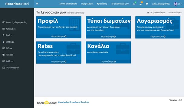 Η κυκλαδίτικη Πλατφόρμα Ηλεκτρονικών Κρατήσεων “Book On Cloud” ΕΙΝΑΙ ΕΔΩ και παρέχεται ΔΩΡΕΑΝ για τους πρώτους 6 μήνες χρήσης στα μέλη του Επιμελητηρίου Κυκλάδων, ενώ η χρέωση μετά το πέρας της δοκιμαστικής περιόδου είναι άκρως ανταγωνιστική και ορίζεται στο 3% επί των ετήσιων ακαθάριστων εσόδων που προκύπτουν από τις online κρατήσεις μέσω της πλατφόρμας.
