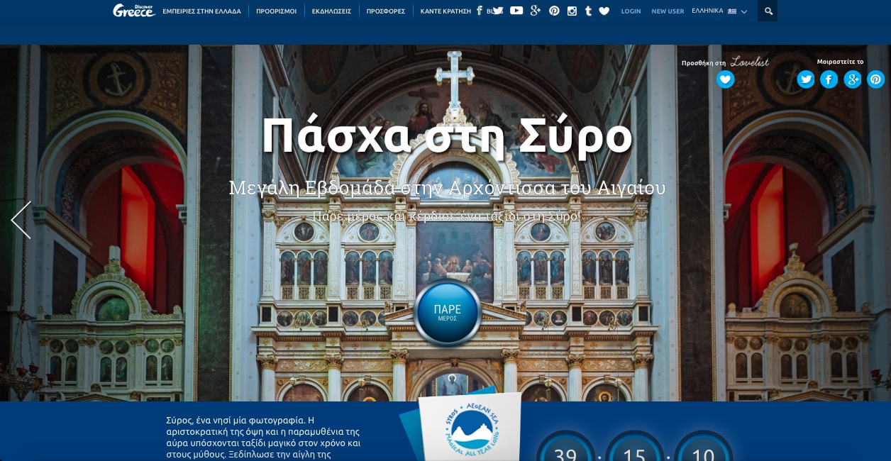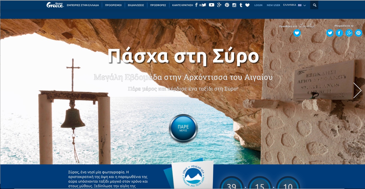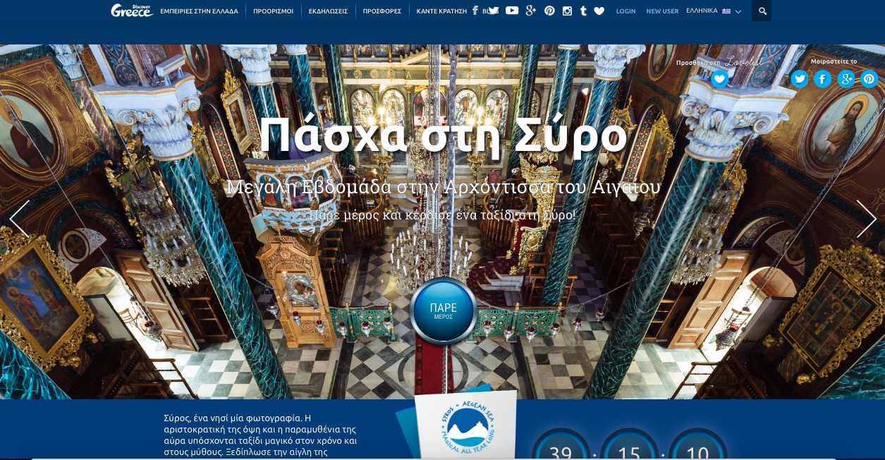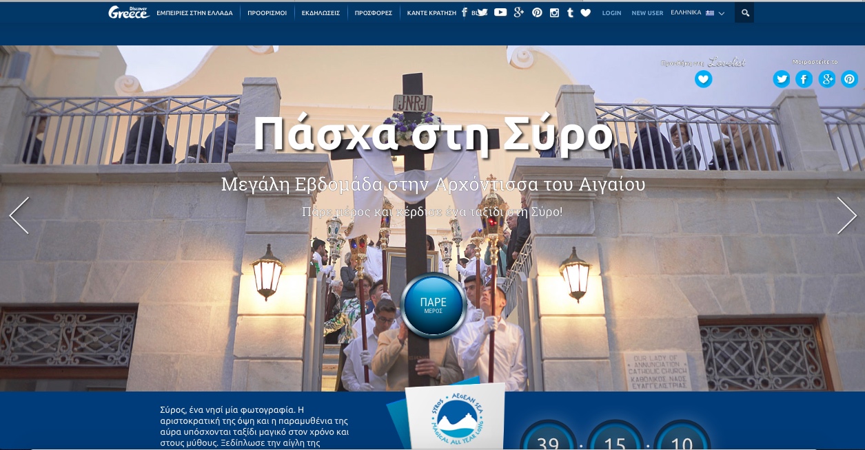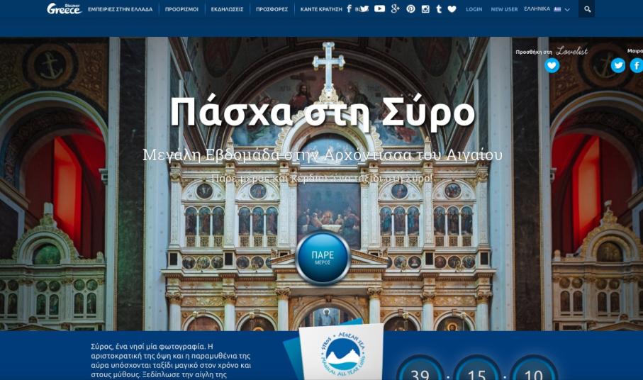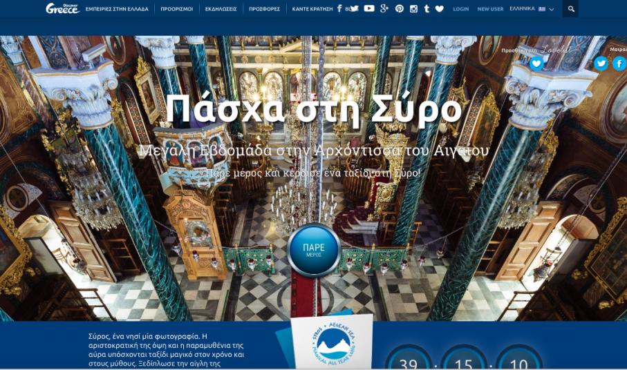 Ο ψηφιακός τόπος του Discovergreece.com, με τους εκατοντάδες χιλιάδες μέλη, θα προβάλλει με κάθε ψηφιακό μέσο την πρόταση της Σύρου ως επισκέψιμο προορισμό για το Πάσχα, με την χρήση των μέσων κοινωνικής δικτύωσης που διαθέτει όπως Facebook, Twitter,