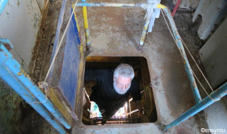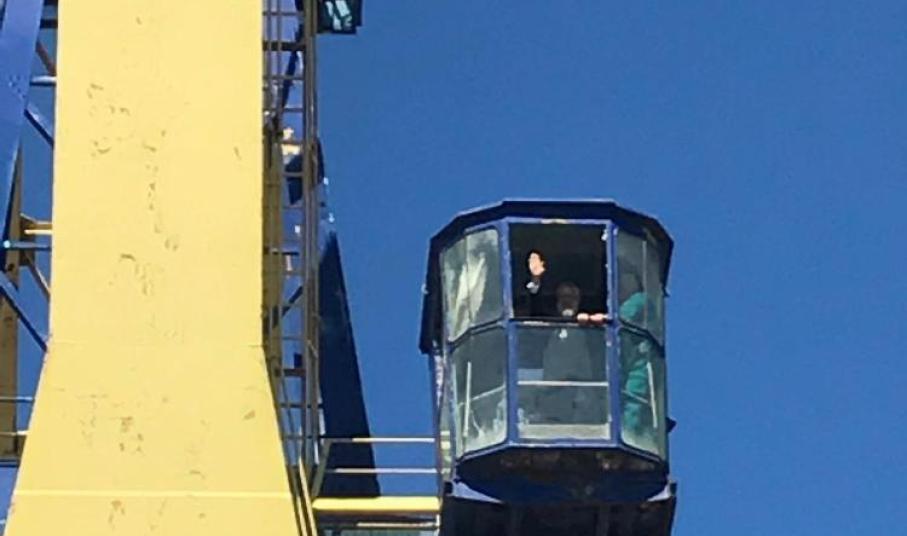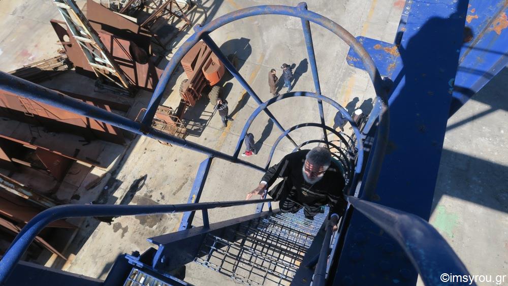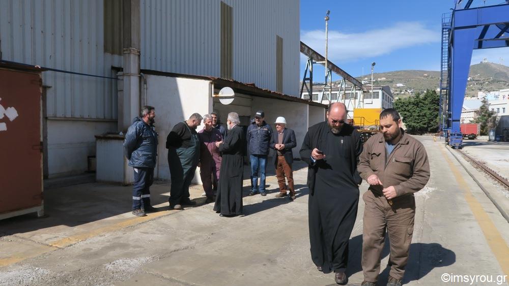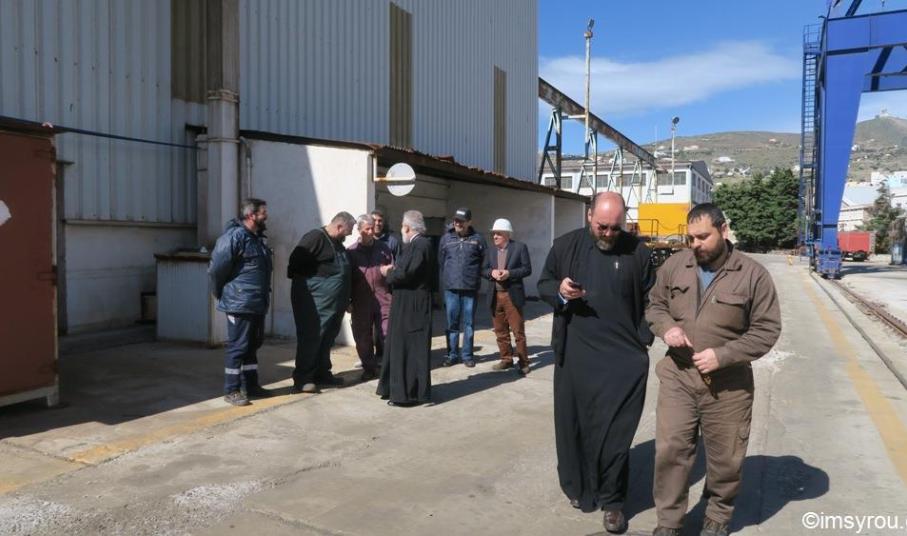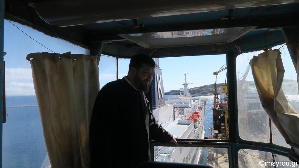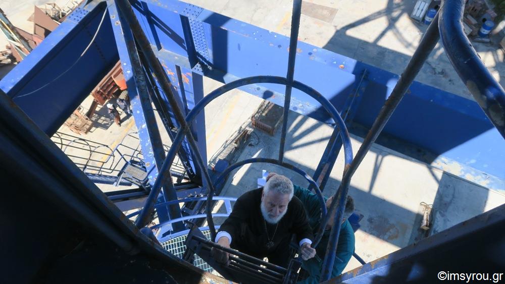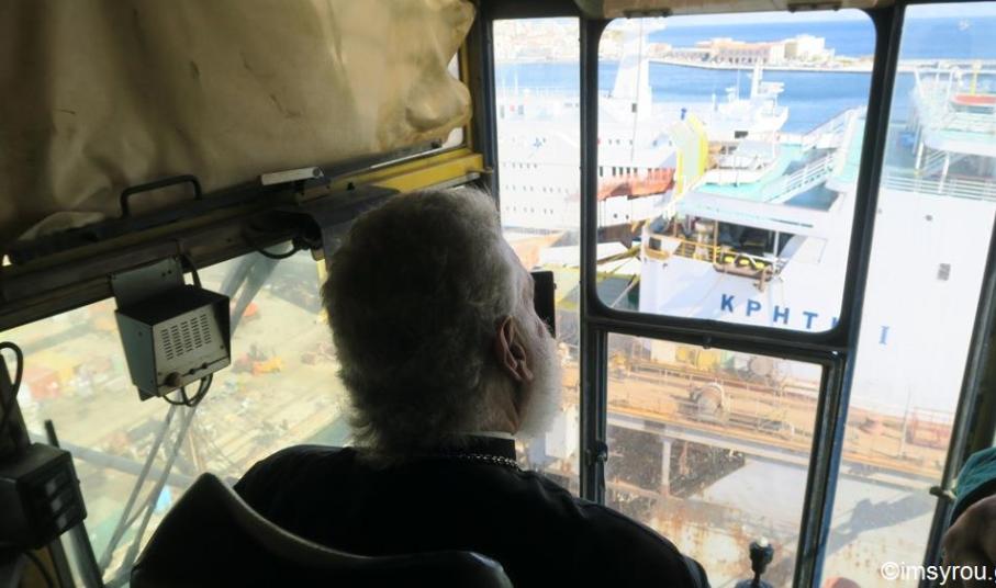 Τους γερανούς των Ναυπηγείων του ΝΕΩΡΙΟΥ επισκέφθηκε σήμερα ο Σεβασμιώτατος κ. Δωρόθεος Β΄ , συνοδευόμενος από τον Πρόεδρο του Ναυπηγείου κ. Κωνστ. Κοκκάλα και τον Πρόεδρο των Χειριστών Γερανών κ. Ελευθέριο Νομικό, ανέβηκε μέχρι τους θαλάμους των χειριστηρίων, χειρίστηκε την περιστροφή ενός γερανού, διένειμε εικόνες και ευλογίες, συνεχάρη τους εργαζομένους σ' αυτούς για την εσωτερική τους τόλμη και την εργατικότητά τους και τους ευχήθηκε υγεία και ευημερία.