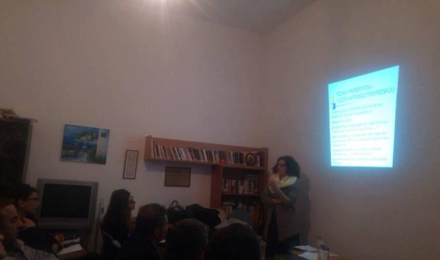Στο πλαίσιο του εκπαιδευτικού σεμιναρίου που πραγματοποιήθηκε στην Καθολική Αρχιεπισκοπή Σύρου, η κοινωνική λειτουργός του Κλιμακίου, Αγγελική Διαμάντη, αρχικά παρουσίασε το έργο και τις δράσεις της Μονάδας.