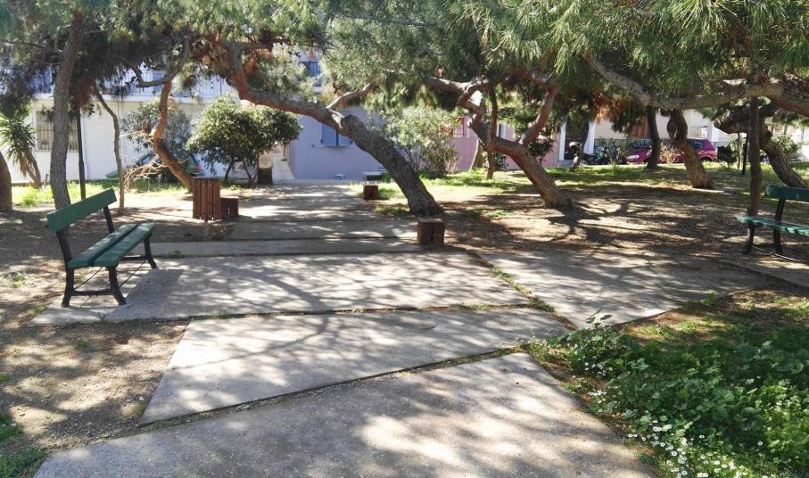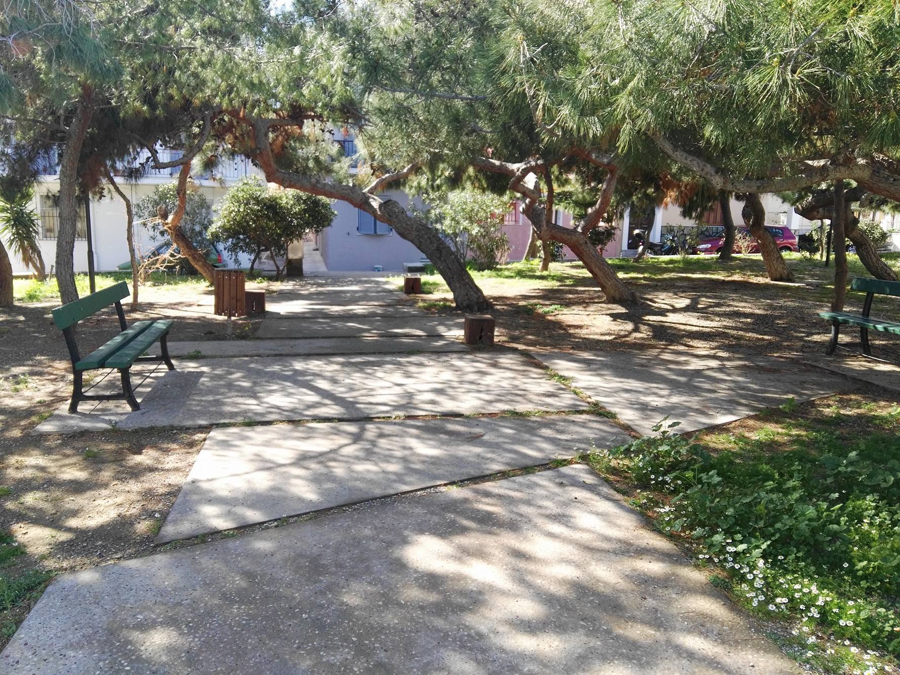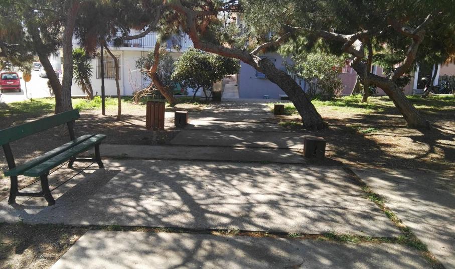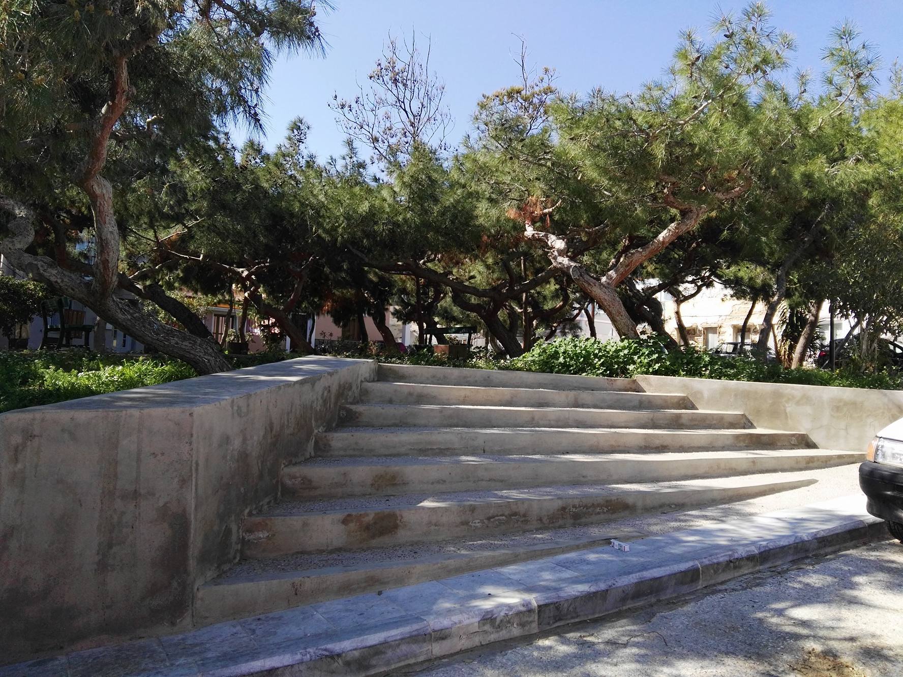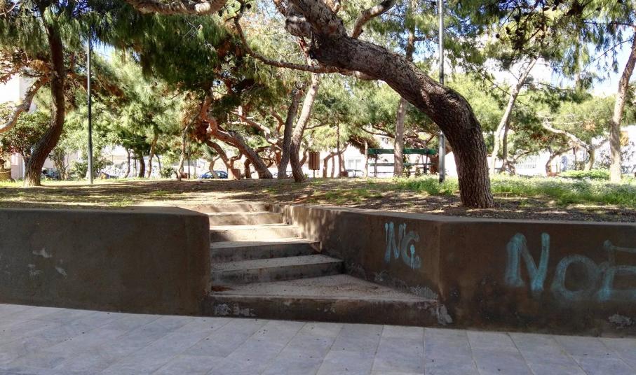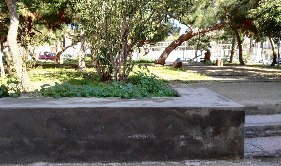 Ο χώρος αρκετών τετραγωνικών μέτρων που συνορεύει σχεδόν με την παιδική χαρά, βελτιώθηκε αρκετά, καθώς δημιουργήθηκε περιμετρικά τοιχίο, διαμορφώθηκαν τα σκαλοπάτια εισόδου κι εξόδου προς και από αυτό, ενώ επιπλέον, ένα σημαντικό τμήμα του, το οποίο διαθέτει καναπεδάκια, απέκτησε το κατάλληλο “έδαφος” για την παραμονή των επισκεπτών.