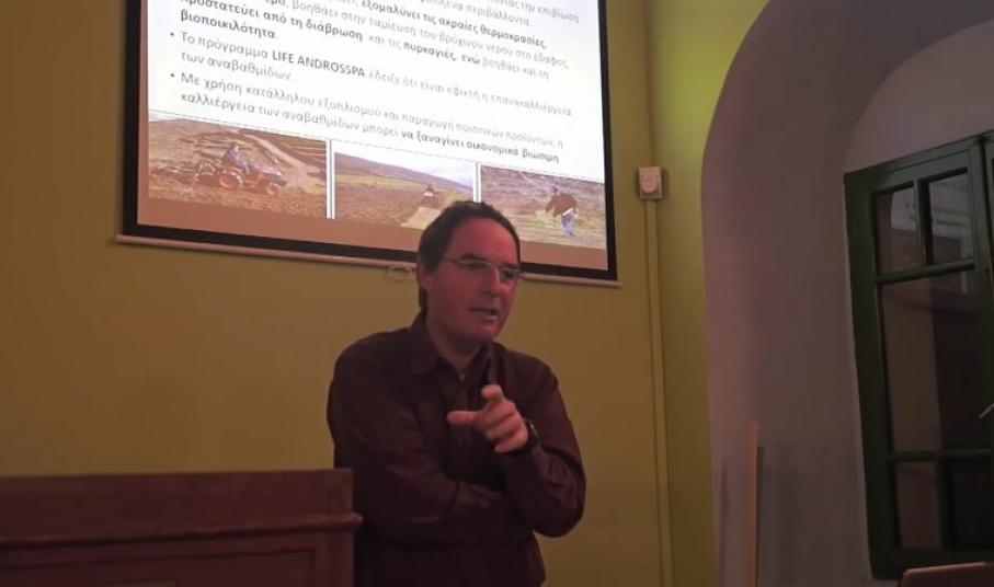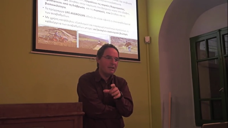 Σύμφωνα με την παρουσίαση του καθηγητή, η δημιουργία – καλλιέργεια των αναβαθμίδων αποτέλεσμα επίπονης χειρωνακτικής προσπάθειας χιλιετιών, διαμορφώνει διαχρονικά, τη σημαντικότερη υποδομή στο χώρο του Αιγαίου επιτρέποντας την επιβίωση των νησιωτικών κοινοτήτων σε αντίξοα και αφιλόξενα περιβάλλοντα. Η καλλιέργεια σε αναβαθμίδες, παράλληλα, εξομαλύνει τις ακραίες θερμοκρασίες, εξοικονομεί νερό, βοηθά την ταμίευση του βρόχινου νερού στο έδαφος, προστατεύει από τη διάβρωση και τις πυρκαγιές, ενώ βοηθά και τη βιοποικιλότητα, ενώ σύμφωνα με τα αποτελέσματα του προγράμματος LIFE ANDROSSPA, είναι εφικτή η επανακαλλιέργεια των αναβαθμίδων, με τη χρήση κατάλληλου εξοπλισμού και παραγωγή ποιοτικών προϊόντων.