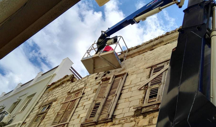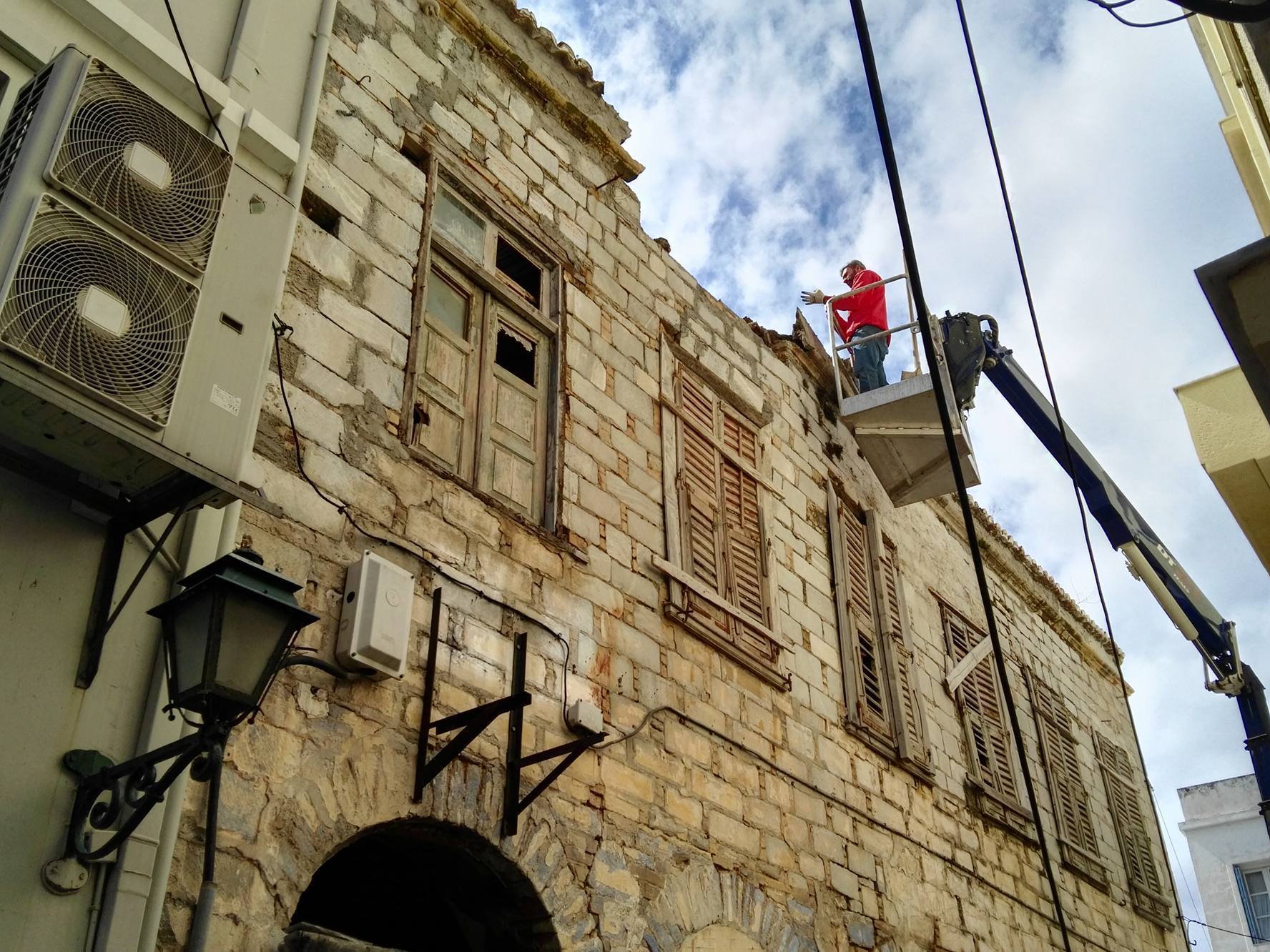 Σε εξέλιξη βρίσκονται από χθες το πρωί οι εργασίες άρσης της επικινδυνότητας ενός ακόμη παλαιού ακινήτου στο κέντρο της Ερμούπολης, από την πλευρά του Δήμου Σύρου – Ερμούπολης, στο πλαίσιο της υποχρέωσης αλλά και της προσπάθειάς του, να εξασφαλίσει τη δυνατότητα ασφαλούς διέλευσης των πεζών σε ένα επιπλέον κεντρικό σημείο της ιστορικής πόλης.