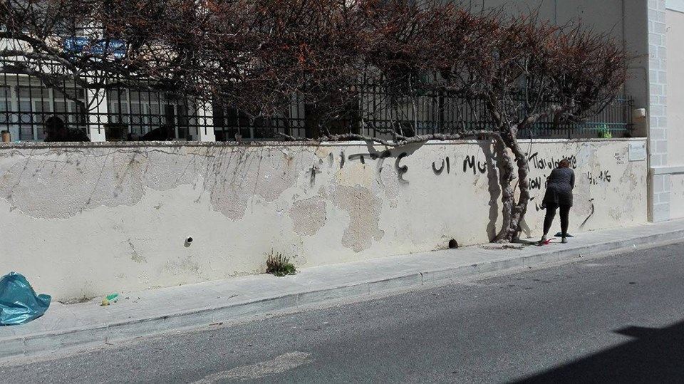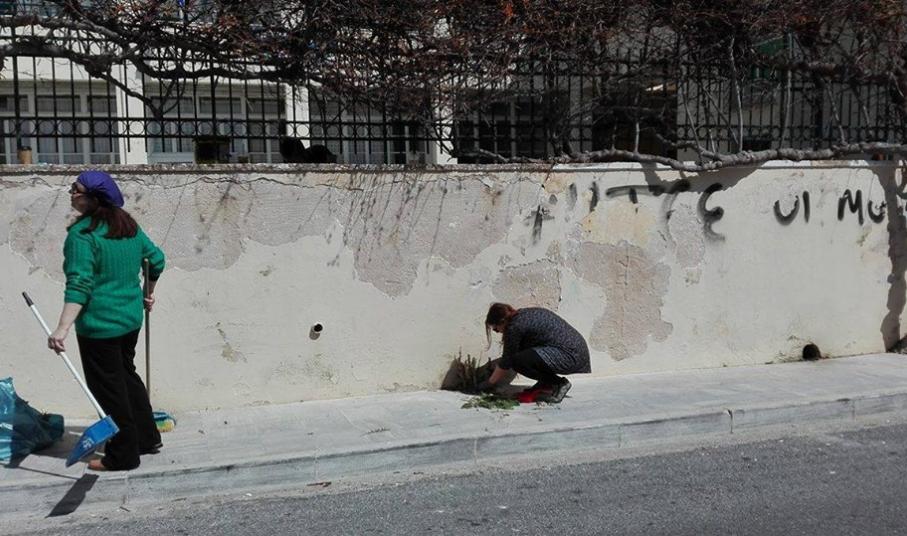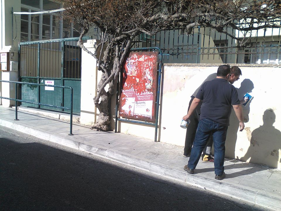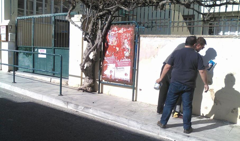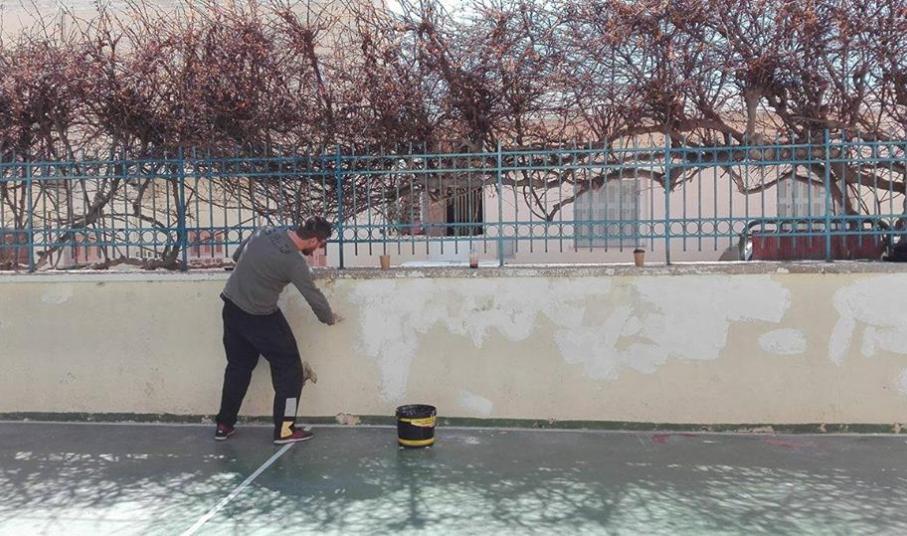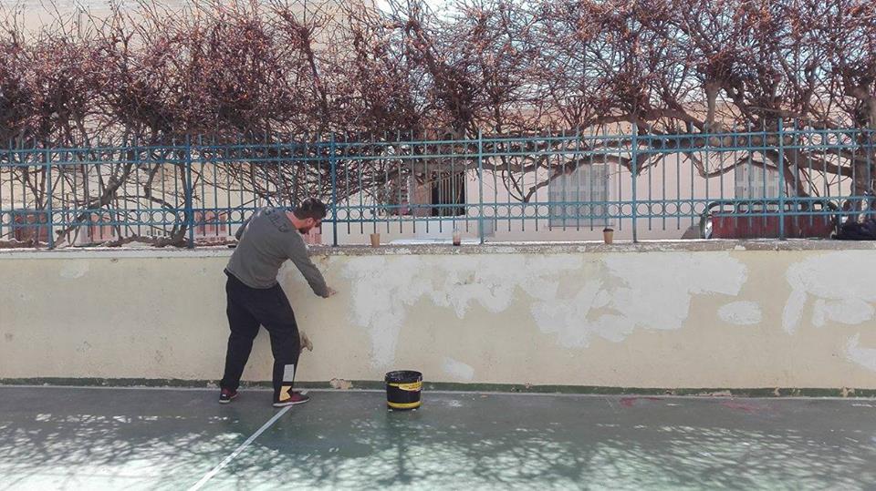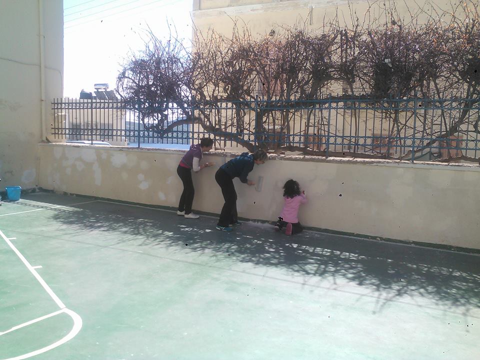 Μετά από πρωτοβουλία του Συλλόγου Γονέων και Κηδεμόνων, ξεκίνησε το περασμένο σαββατοκύριακο ο καλλωπισμός του προαυλίου και της πρόσοψης του σχολείου, προκειμένου οι ψυχροί -μέχρι σήμερα- τοίχοι του, να γεμίσουν χαρούμενες ζωγραφιές.