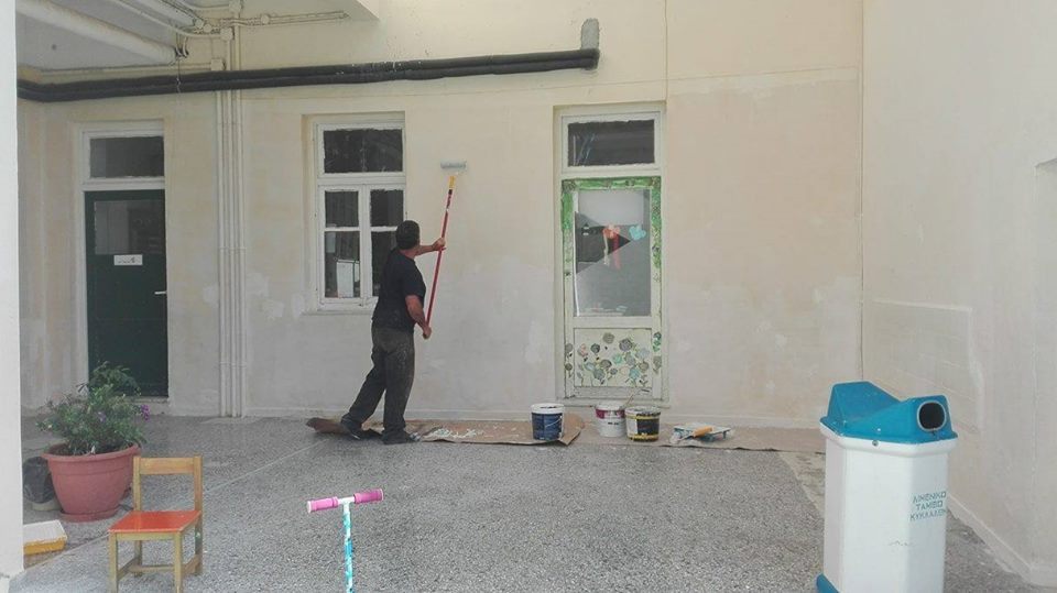 Η επίτευξη αυτού του στόχου βασίζεται στην εθελοντική εργασία των γονέων, οι οποίοι αφιέρωσαν προσωπικό χρόνο και ανέλαβαν τις εργασίες με δικά τους έξοδα. «Για την αγορά των χρωμάτων, θα χρησιμοποιήσουμε κάποια χρήματα που διέθεσε πέρυσι ο Δήμος Σύρου – Ερμούπολης, στο πλαίσιο του βαψίματος των εσωτερικών χώρων του σχολείου, ωστόσο, τα περισσότερα υλικά θα καλυφθούν με δικά μας έξοδα», διευκρίνισε η κ. Κομνηνού.