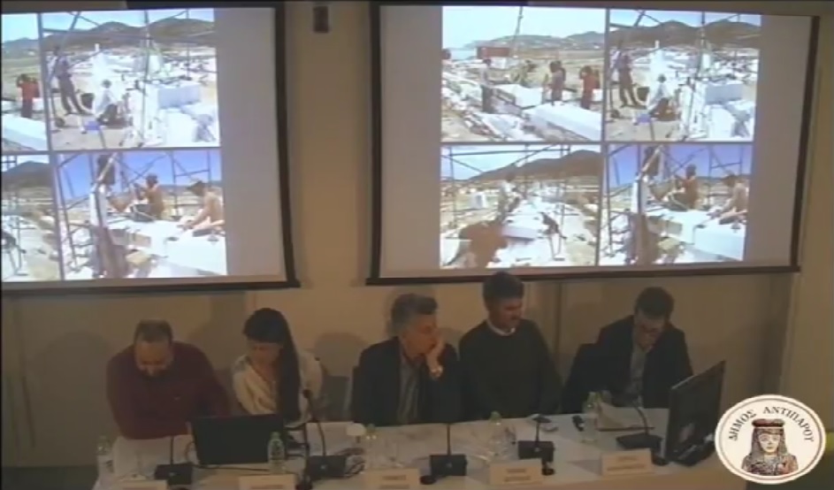 Δίνοντας πρώτα μία συνολική περιγραφή των χαρακτηριστικών του αρχαιολογικού χώρου στην Πρεπέσινθο, εξήγησε, πως ενδέχεται η νησίδα να συνδέονταν με την Πάρο ή/και την Αντίπαρο εδαφικά, δεδομένου, πως ανακαλύφθηκαν υποθαλάσσια ευρήματα, περί τα 2 μέτρα χαμηλότερα από τη σημερινή στάθμη της θάλασσας.