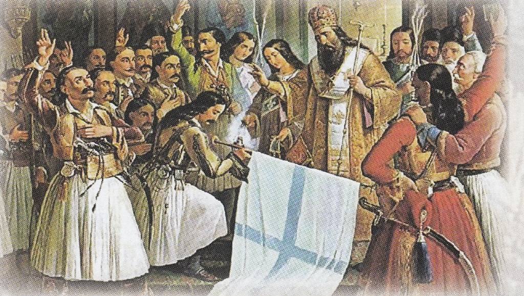 Όλοι γνωρίζουμε, βέβαια, ότι στις 25 Μαρτίου, ημέρα του Ευαγγελισμού της Θεοτόκου, ο Παλαιών Πατρών Γερμανός ευλόγησε τα όπλα των εξεγερθέντων στην Μονή της Αγίας Λαύρας. Ποτέ δεν θα ξεχαστούν οι στίχοι του Ρήγα Φεραίου που συνέθεσε τον γνωστό “Θούριο” που σημαίνει: γοργό και ρυθμικό πολεμικό τραγούδι, που στόχο έχει να εμψυχώσει μαχητές, αγωνιστές (Θούριος = παιάνας – εμβατήριο). Ο Ρήγας έγραψε: