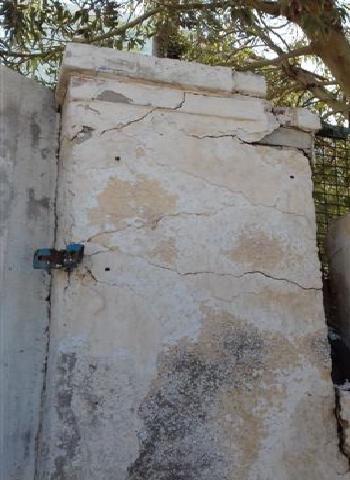 7. Στο σύνολο της περίφραξης παρουσιάζει σημειακή αποσάθρωση του επιχρίσματος και αποσάθρωση του αρμολογήματος, με αποτέλεσμα την πτώση λίθων εσωτερικά και εξωτερικά στις περιμετρικές οδούς. Τα κολωνάκια της περίφραξης έχουν περιμετρικές ρηγματώσεις και έχουν αποκολληθεί τμήματα τους. Το περιμετρικό σενάζ, στη στέψη της λιθοδομής, έχει κατά τόπους αποξηλωθεί. Όλα τα παραπάνω έχουν ως αποτέλεσμα την μη επαρκή στήριξη της μεταλλικής περίφραξης του σταδίου.
