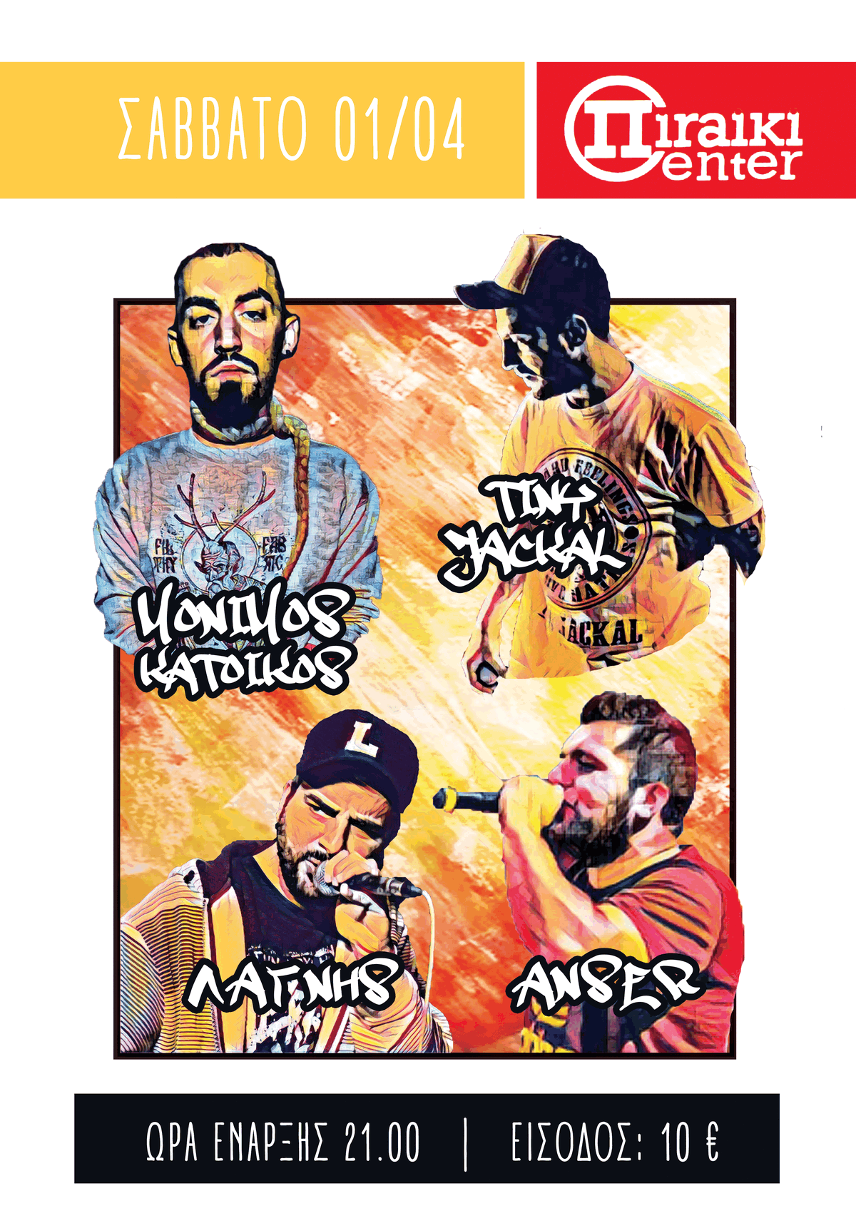 Δεν είναι τόσο εύκολο να συστήσουμε στο ευρύ κοινό τους ανωτέρω rap καλλιτέχνες γιατί κάθε ένας εξ αυτών έχει τη δική του μοναδική ιστορία στη ελληνική hip hop σκηνή. Με τριψήφιο αριθμό συναυλιών, ο καθένας τους ξεχωριστά, από τις αρχές του 2000 έως και σήμερα, οι τέσσερις τους συναντιούνται για μια βραδιά στη Σύρο. Ο Μόνιμος Κάτοικος από τη Θήβα, ο Tiny Jackal από τον Κορυδαλλό, ο Anser από τη Σπάρτη και ο Λάγνης από την Ερμούπολη, είναι διαφορετικοί άνθρωποι με κοινές πορείες. Τους ενώνει η αγάπη τους για το ουσιαστικό έμμετρο λόγο πάνω στον καυτό hip hop ρυθμό.